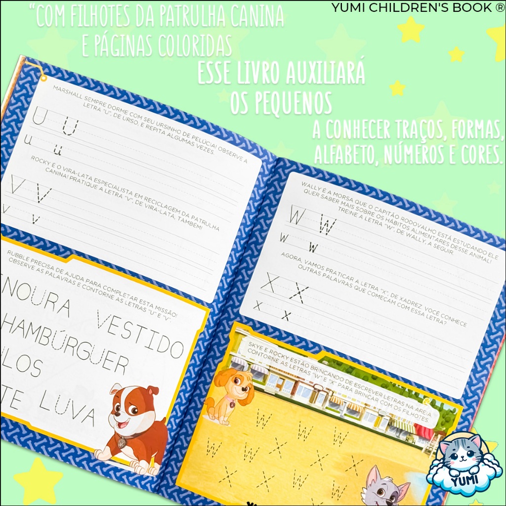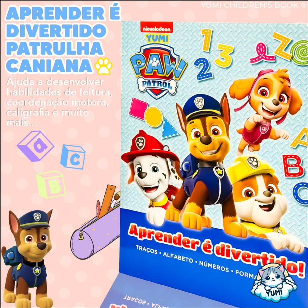 Livro Infantil Cartilha Caminhos Da Alfabetização Patrulha Canina - Caligrafia Números Atividades Educativas