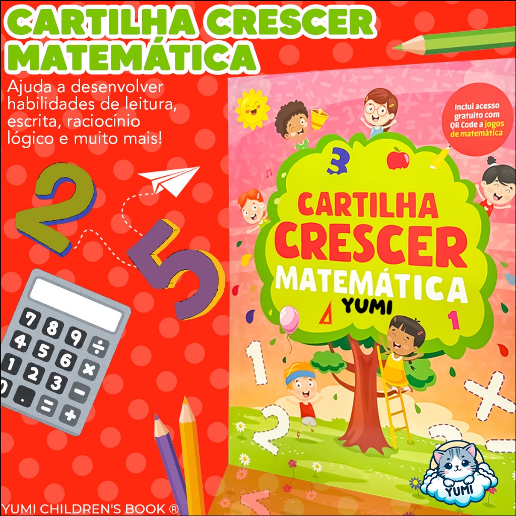 Livro Infantil Cartilha Matemática Atividades Para Treinar Estudar + Jogos Qr Code