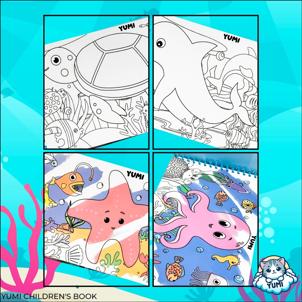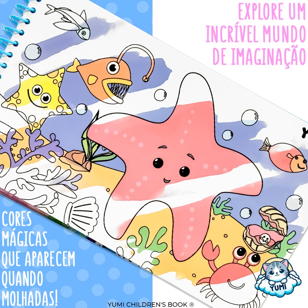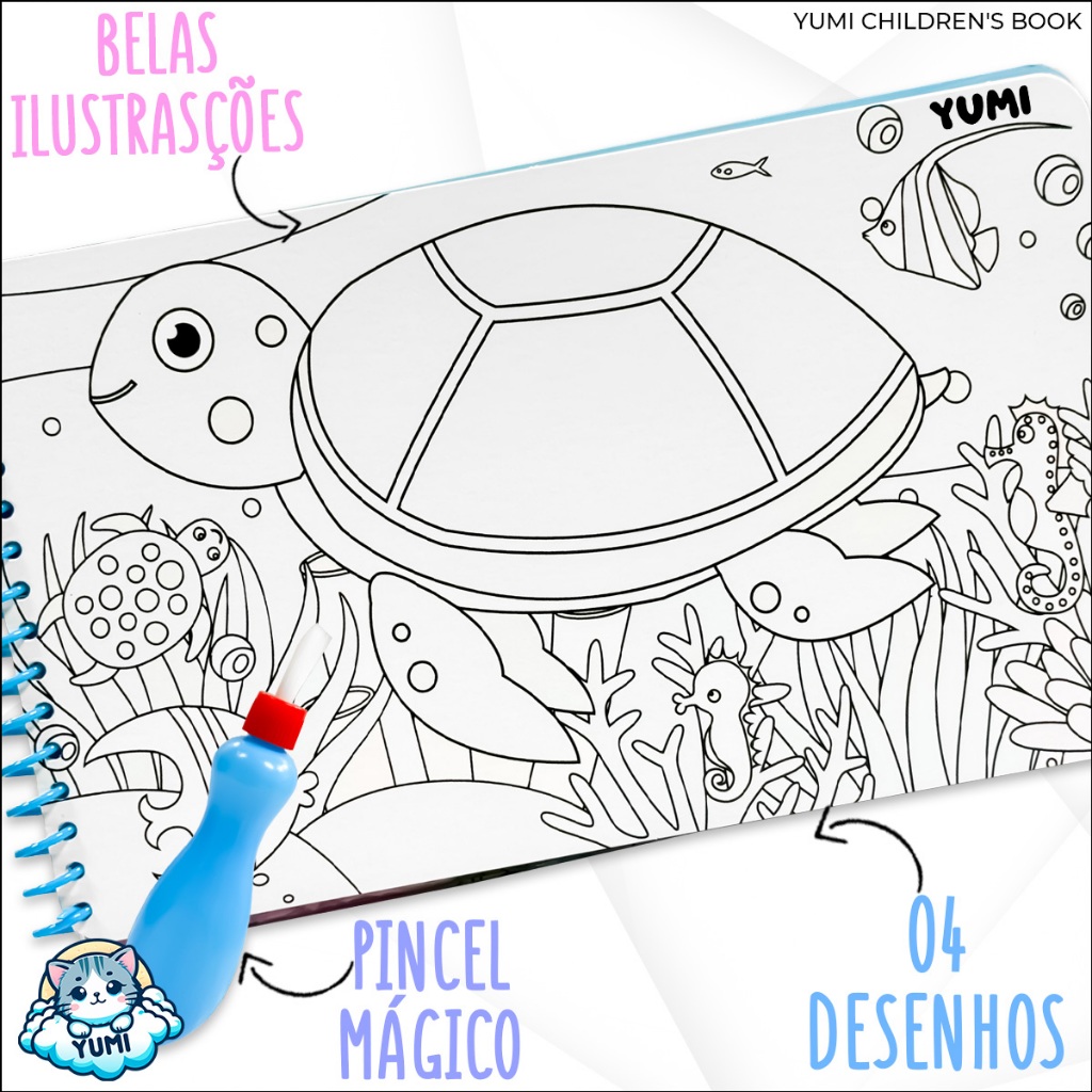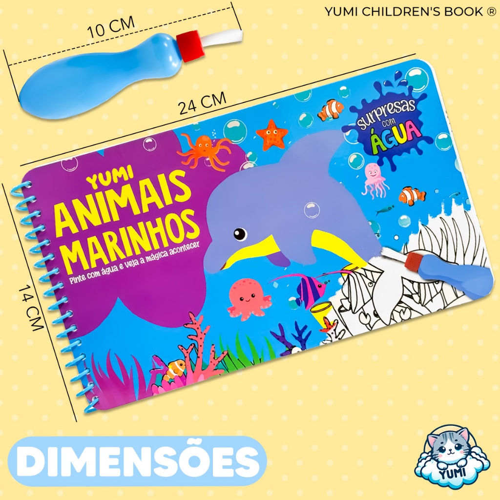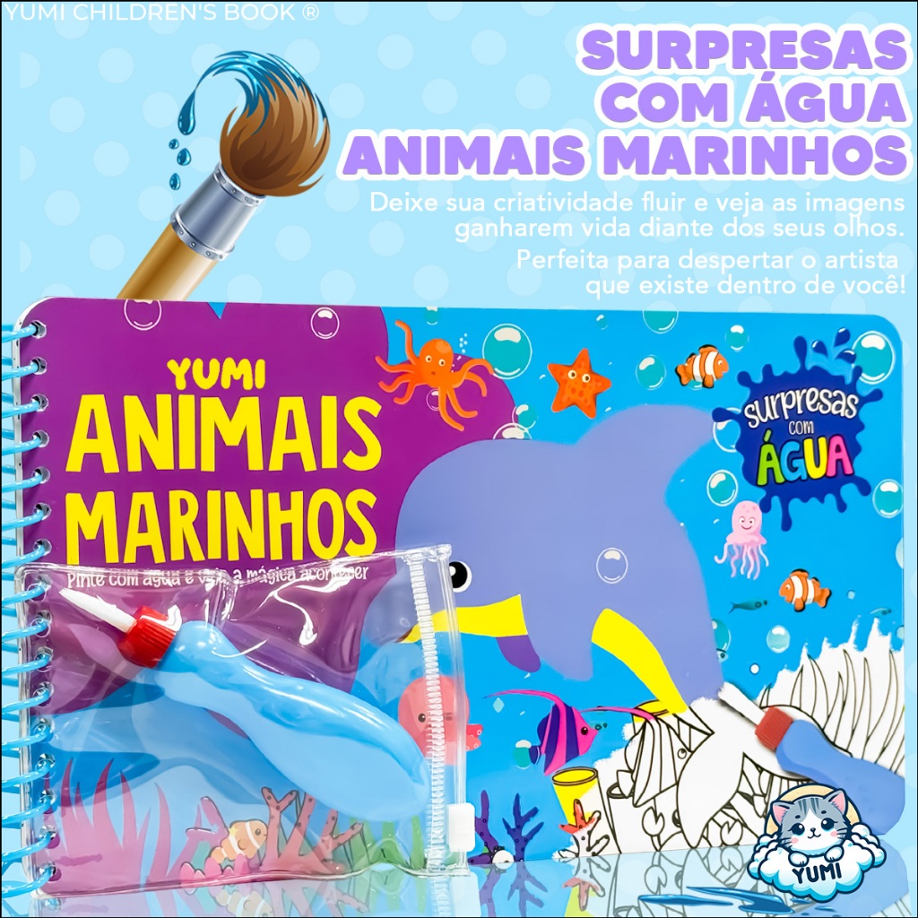 Livro Infantil Desenhos Animais Marinhos Pinta Com Água Capa Dura Agua book Aquabook