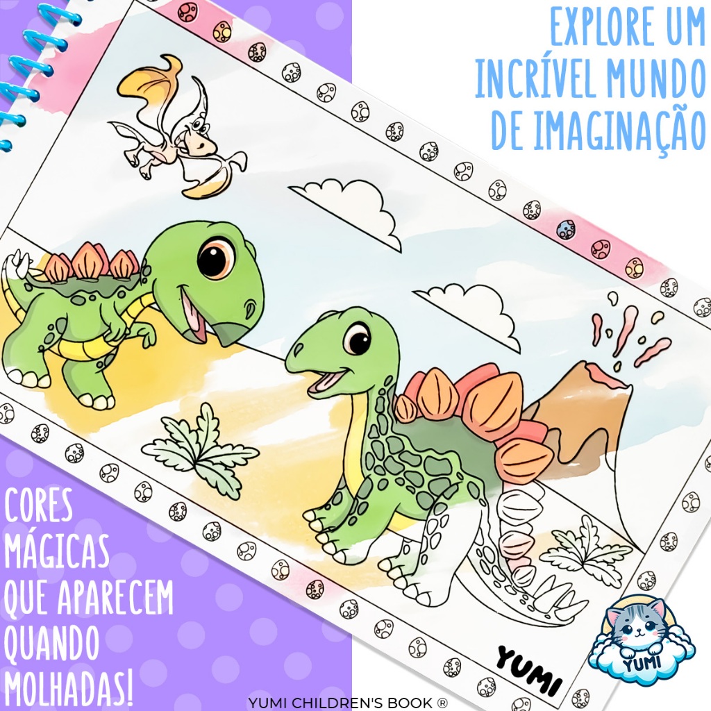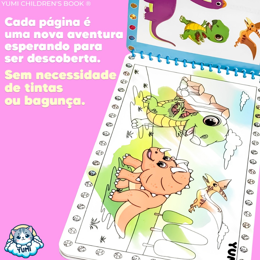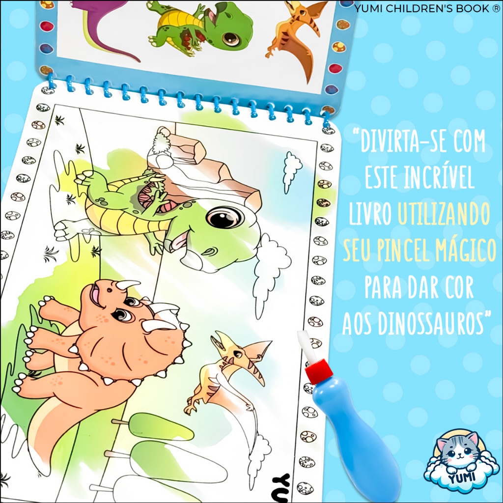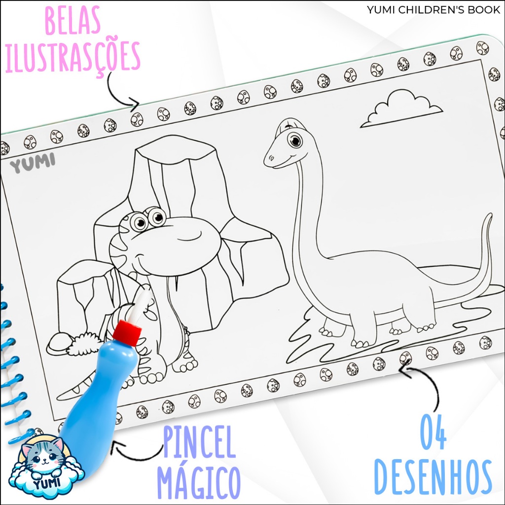 Livro Infantil Desenhos Dinossauros Pinta Com Água Capa Dura Agua book Aquabook