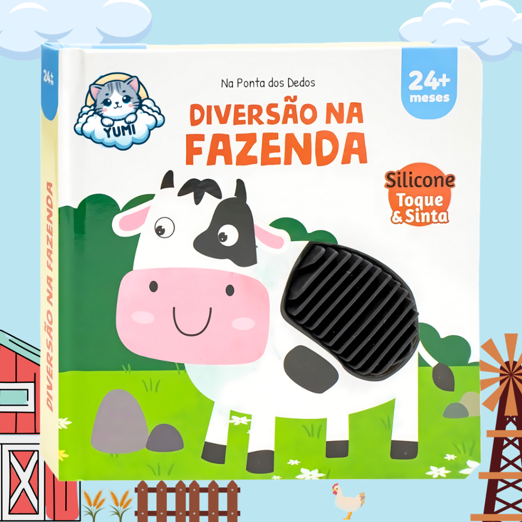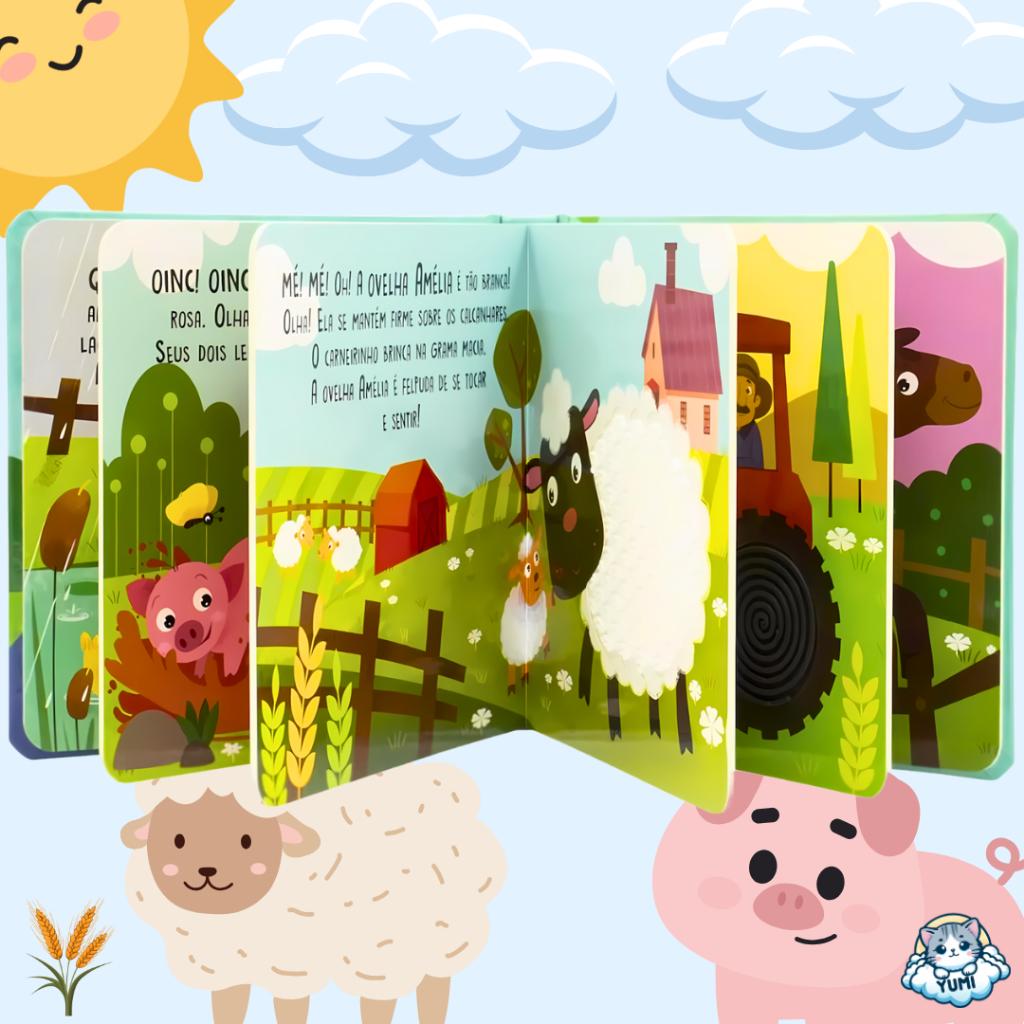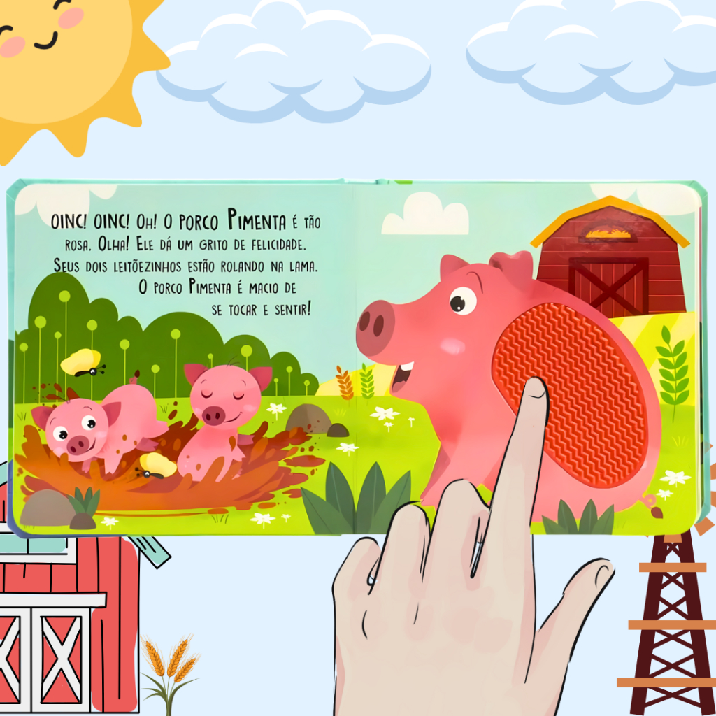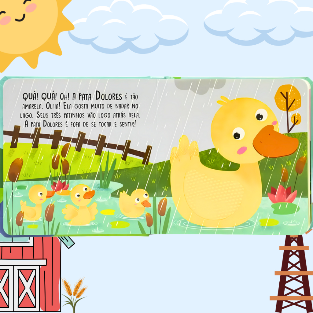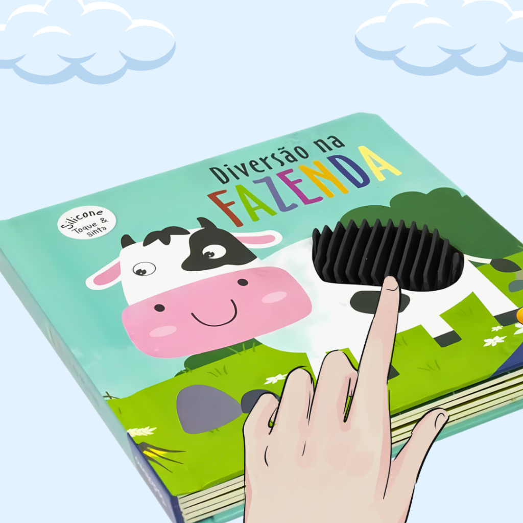 Livro Infantil Educativo Sensorial Toque E Sinta Diversão na Fazenda Texturas Silicone Premium