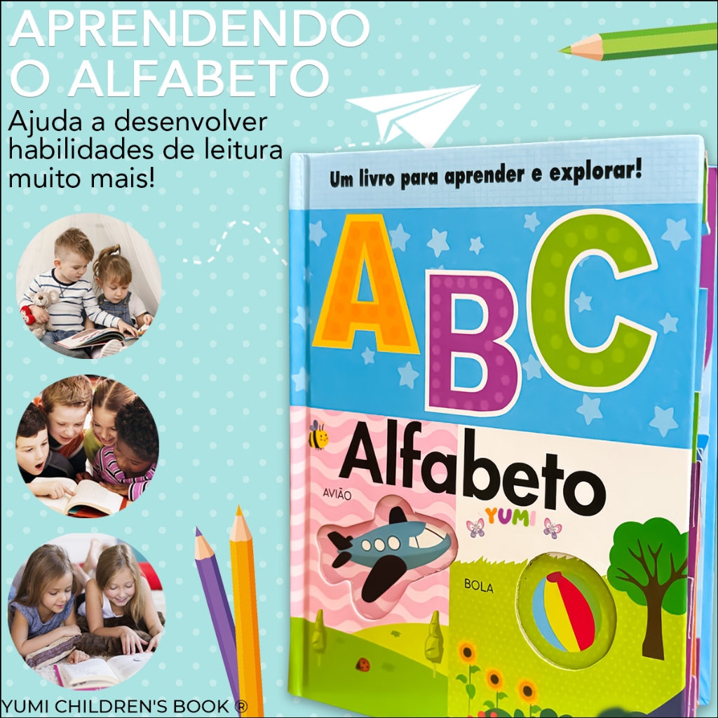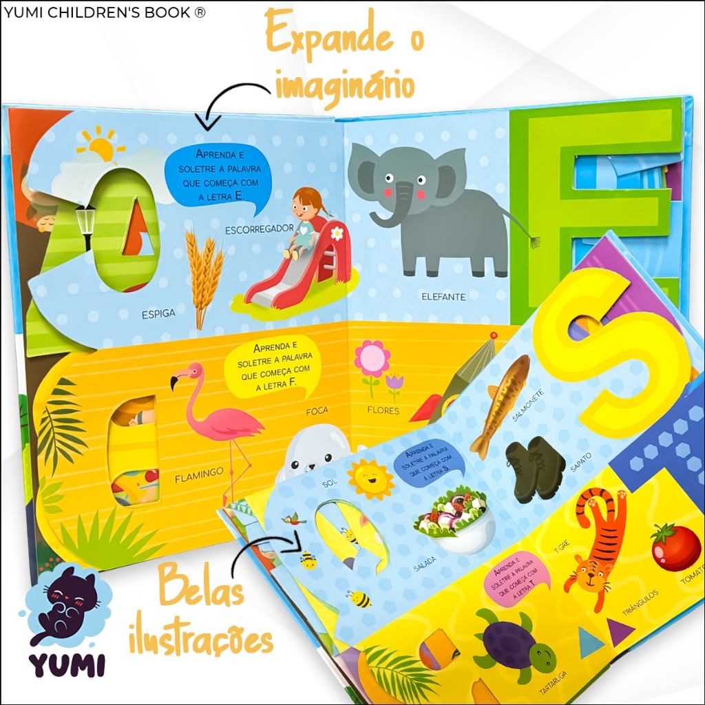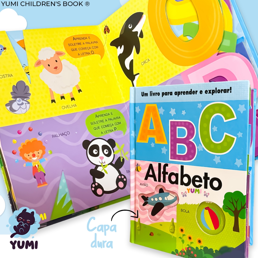 Livro Infantil do Bebê Primeiras Palavras Alfabeto Ilustrado Letras em 3D Capa Dura Premium