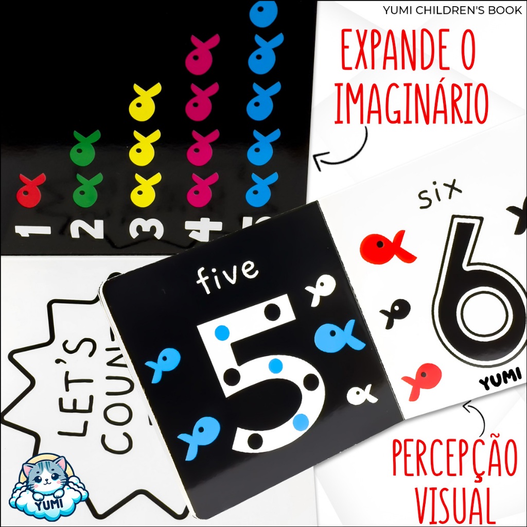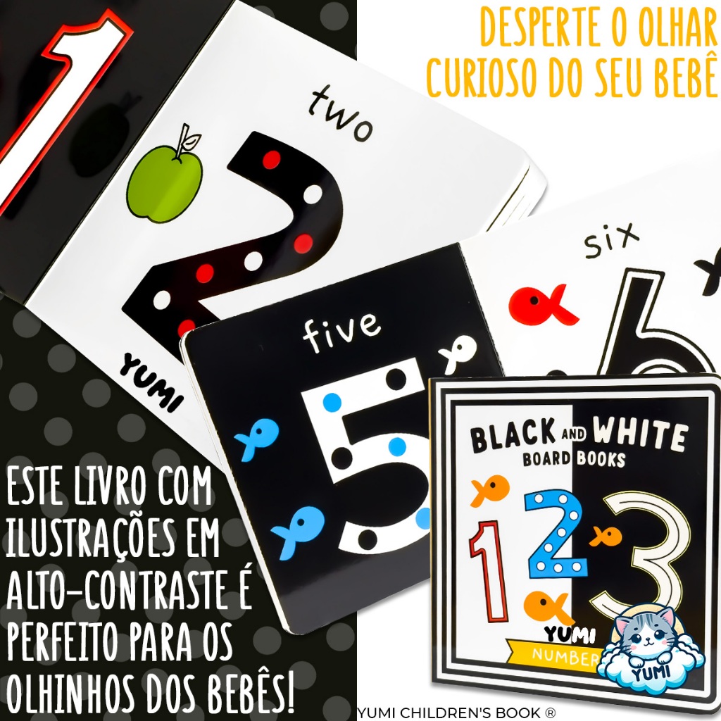 Livro Para Bebês Alto Contraste Preto E Branco Montessori Numbers | Aprendendo As Palavras Em Inglês