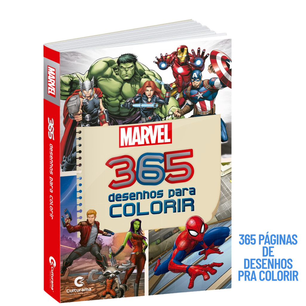 Livro Para Colorir Infantil 365 Desenhos Marvel Vingadores Homem Aranha Hulk Capitão América Homem