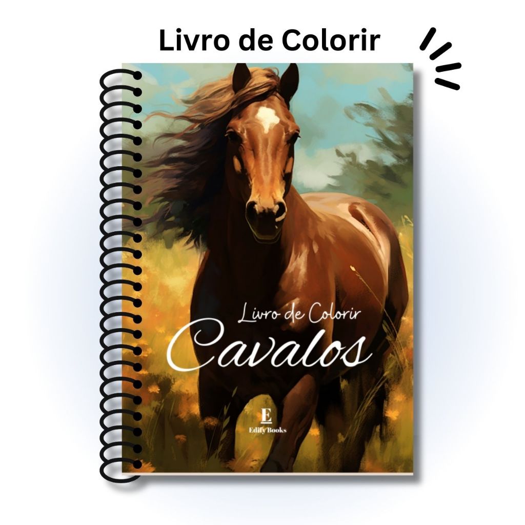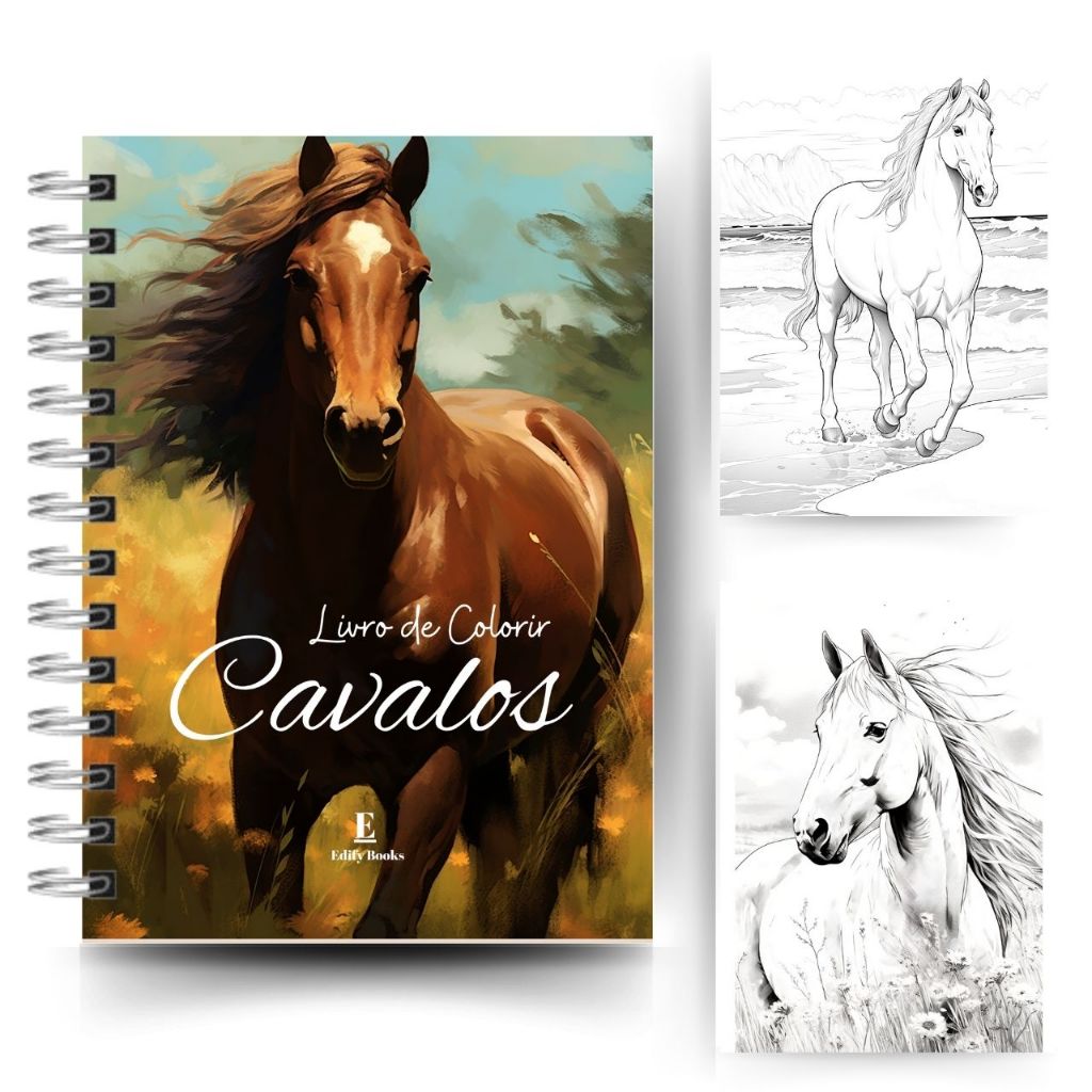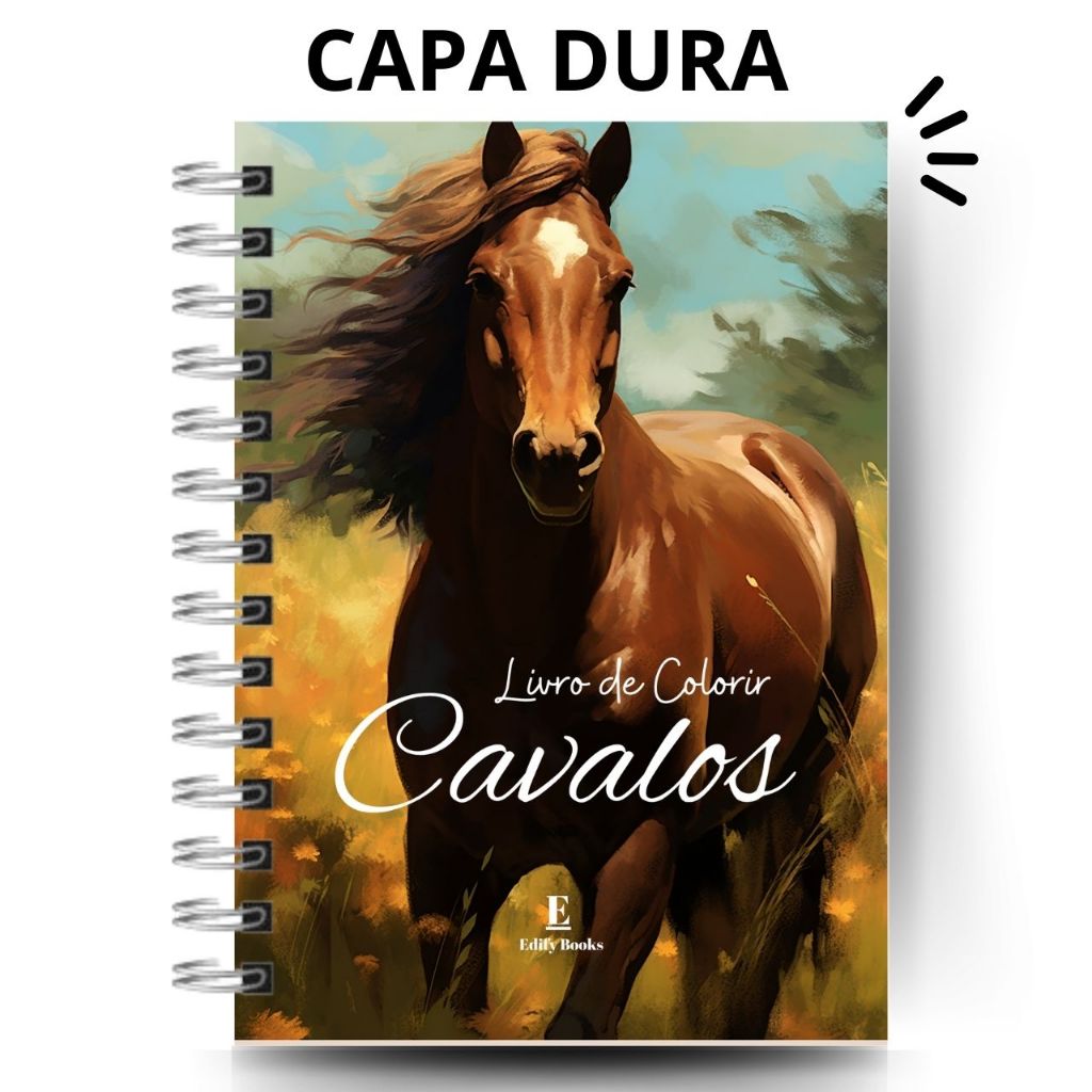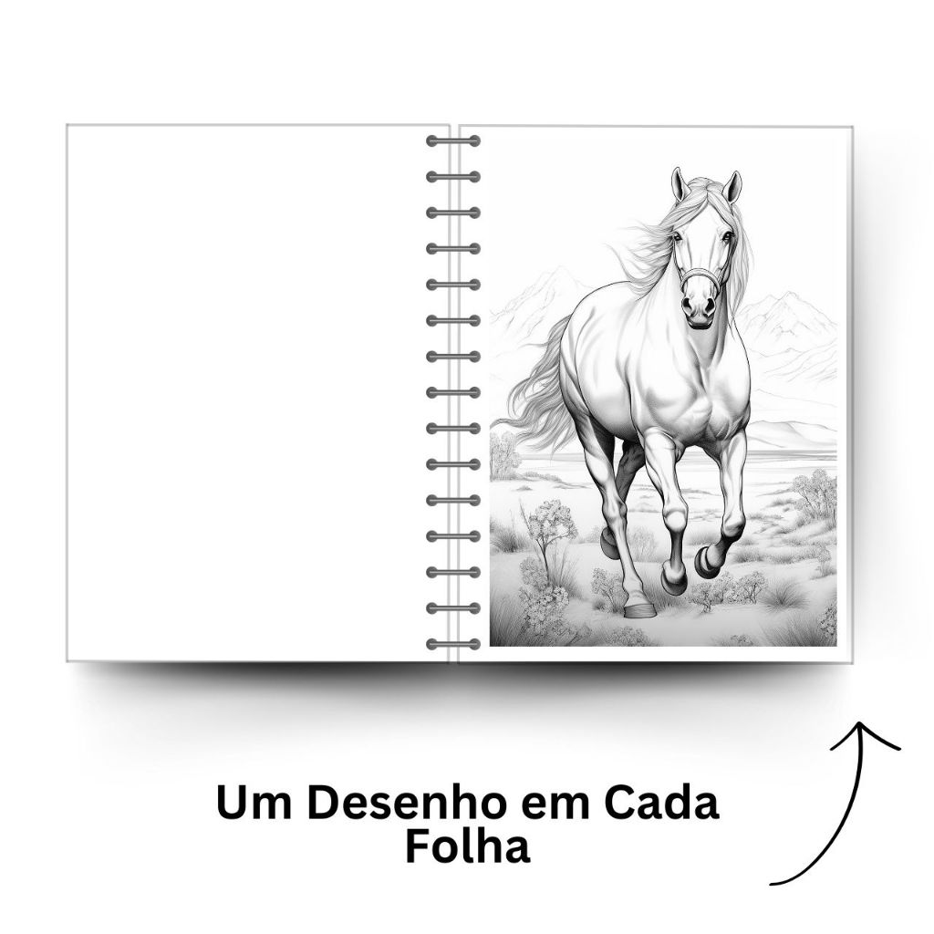 Livro de Colorir Adulto Desenhos Cavalos Capa Dura ou Flexível Espiral A5 gramatura 120g 50 página