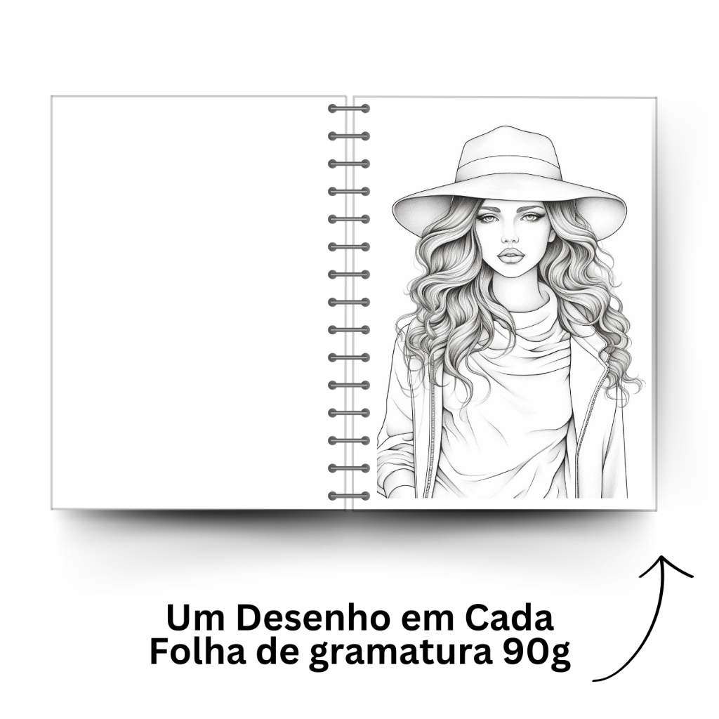 Livro de Colorir Adulto Desenhos Mulheres Moda Outono Capa Dura A5 gramatura120g 50 páginas