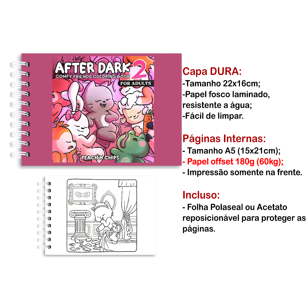 Livro de Colorir After Dark (Adulto) - 40 Folhas Papel 180g wire-o capa normal ou holográfica
