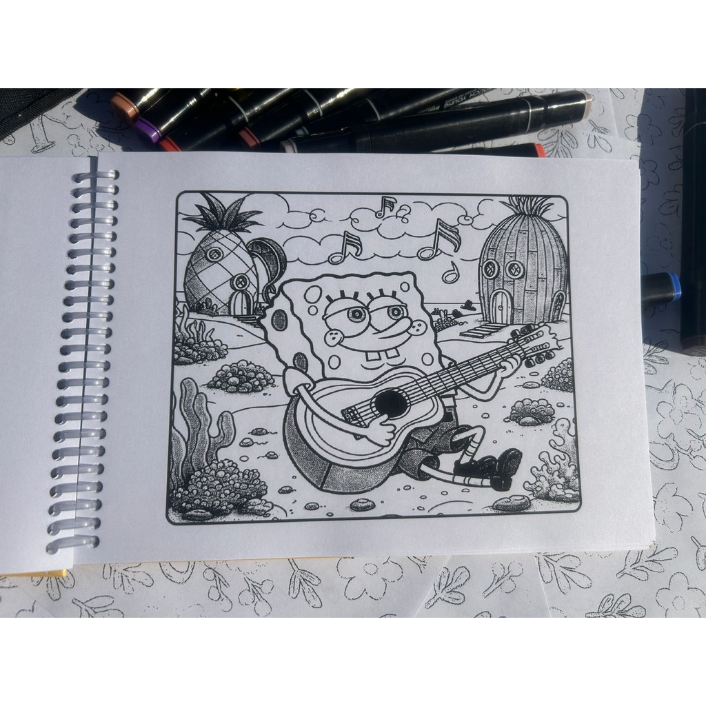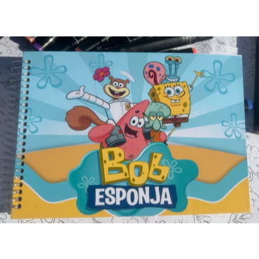 Livro de Colorir Bob Esponja A5 Capa Dura Espiral Infantil Criativo Educativo Caderno Pintura