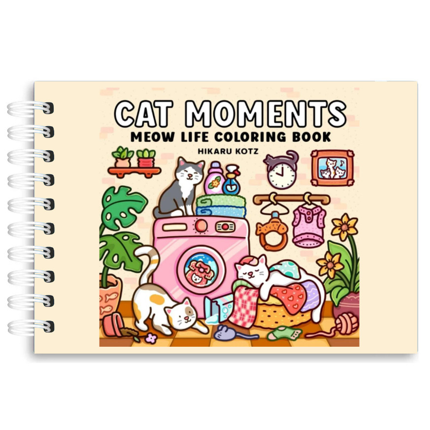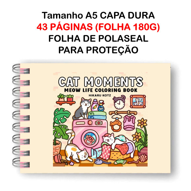 Livro de Colorir CAT MOMENTS Papel 180g 43 Folhas wire-o elástico capa normal ou holográfica pintar bob good color