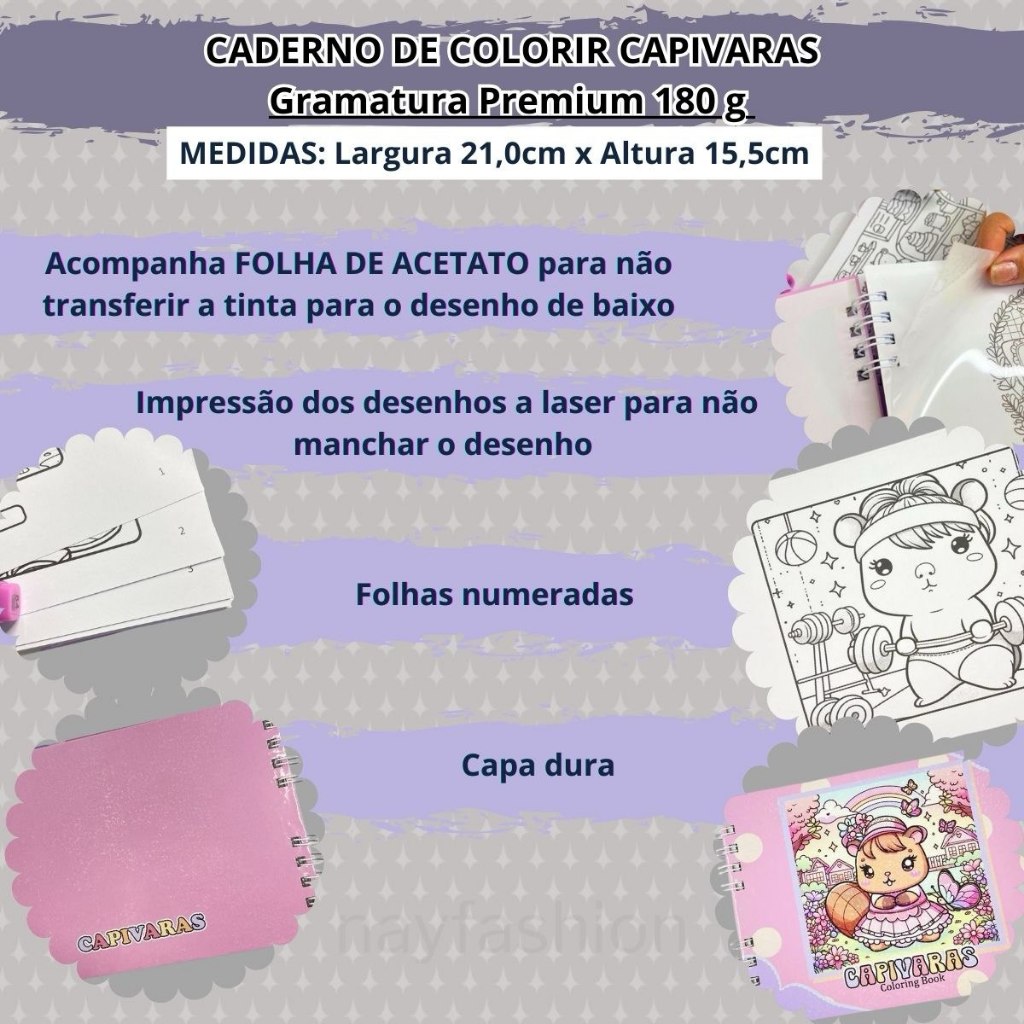 Livro de Colorir Capivara Cute 51 Folhas capa dura caderno de desenho infantil fofo -180g