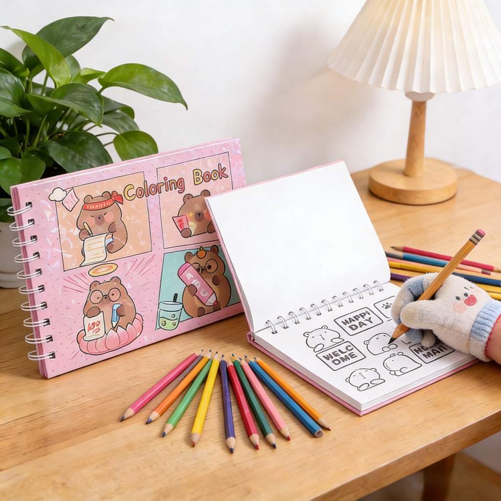 Livro de Colorir Capivara cute 50 Folhas Caderno de Desenho Pintura Coloring Book infantil,Promoção