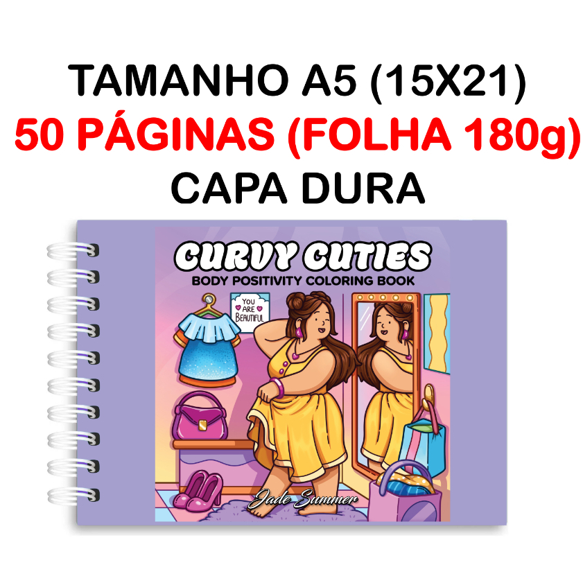 Livro de Colorir Curvy Cuties - 42 Folhas Papel 180g wire-o capa normal ou holográfica e elástico pintar good color