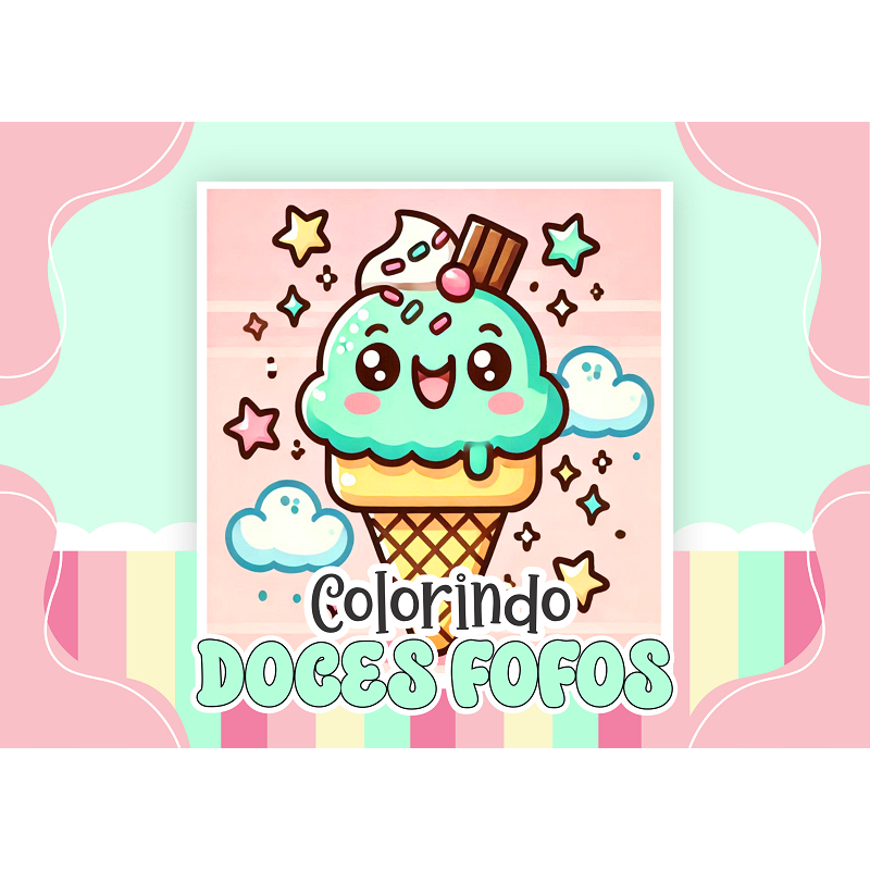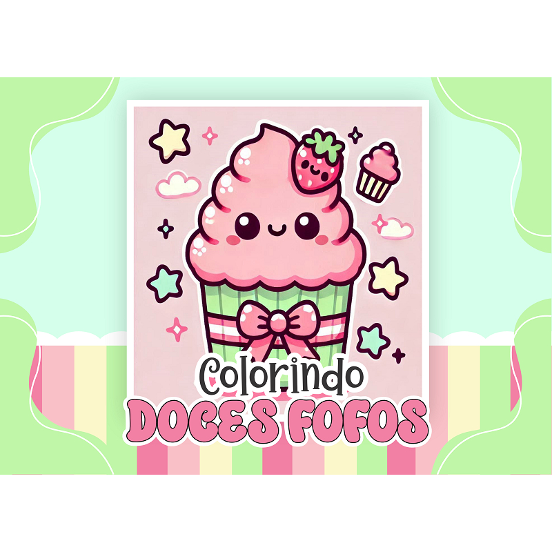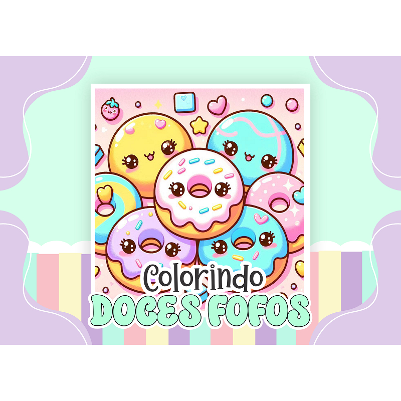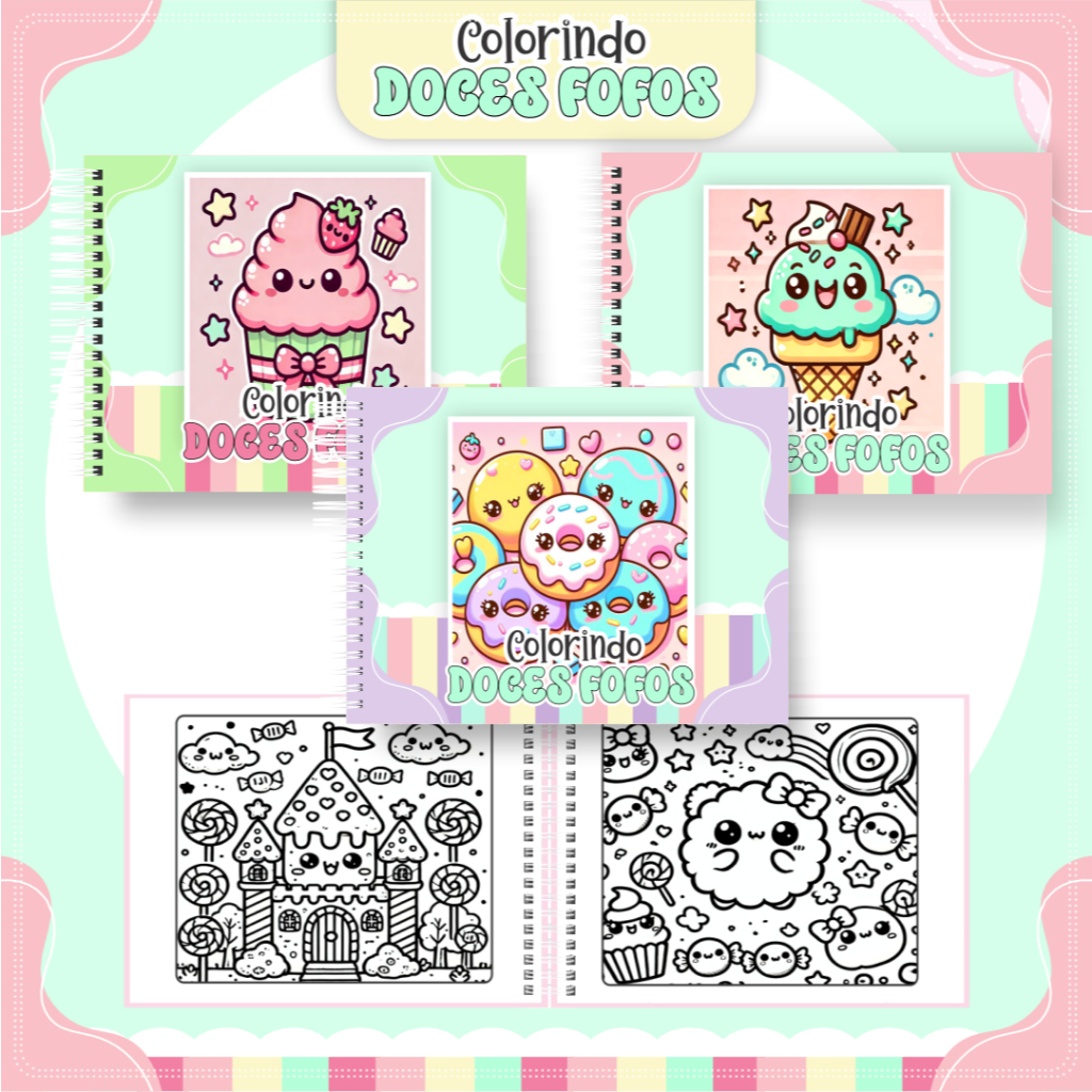 Livro de Colorir DOCES FOFOS 50 Folhas Papel 180g wire-o capa normal ou holográfica color book pintar bob good