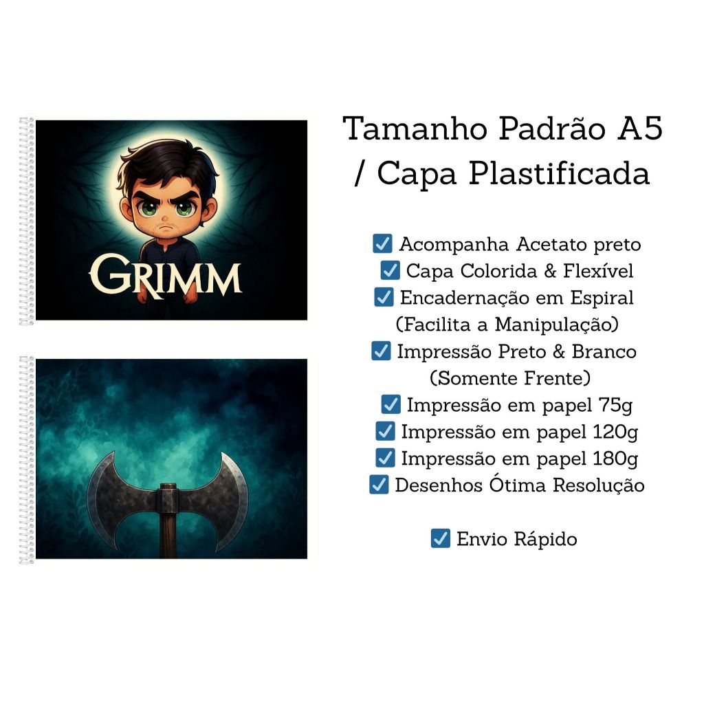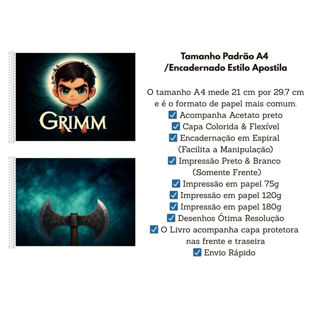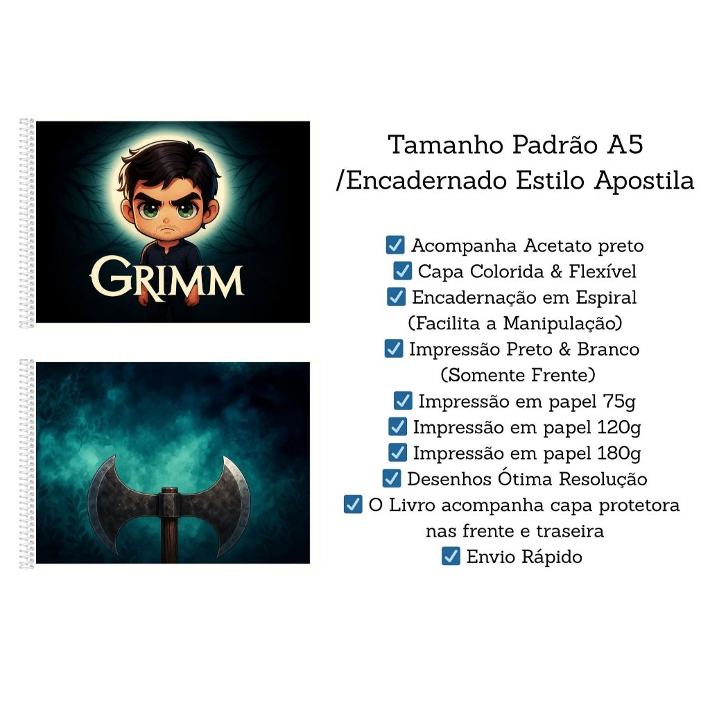 Livro de Colorir Grimm | Coloring Book | Edição Fofa e Divertida |Tam. A5 e A4| 50 Paginas |Series