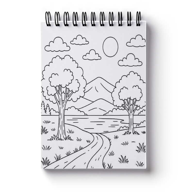 Livro de Colorir Paisagens Capa Dura 50 Desenhos A5 Folha de 120 Gramas Acomapanha Folha Para Proteçãp