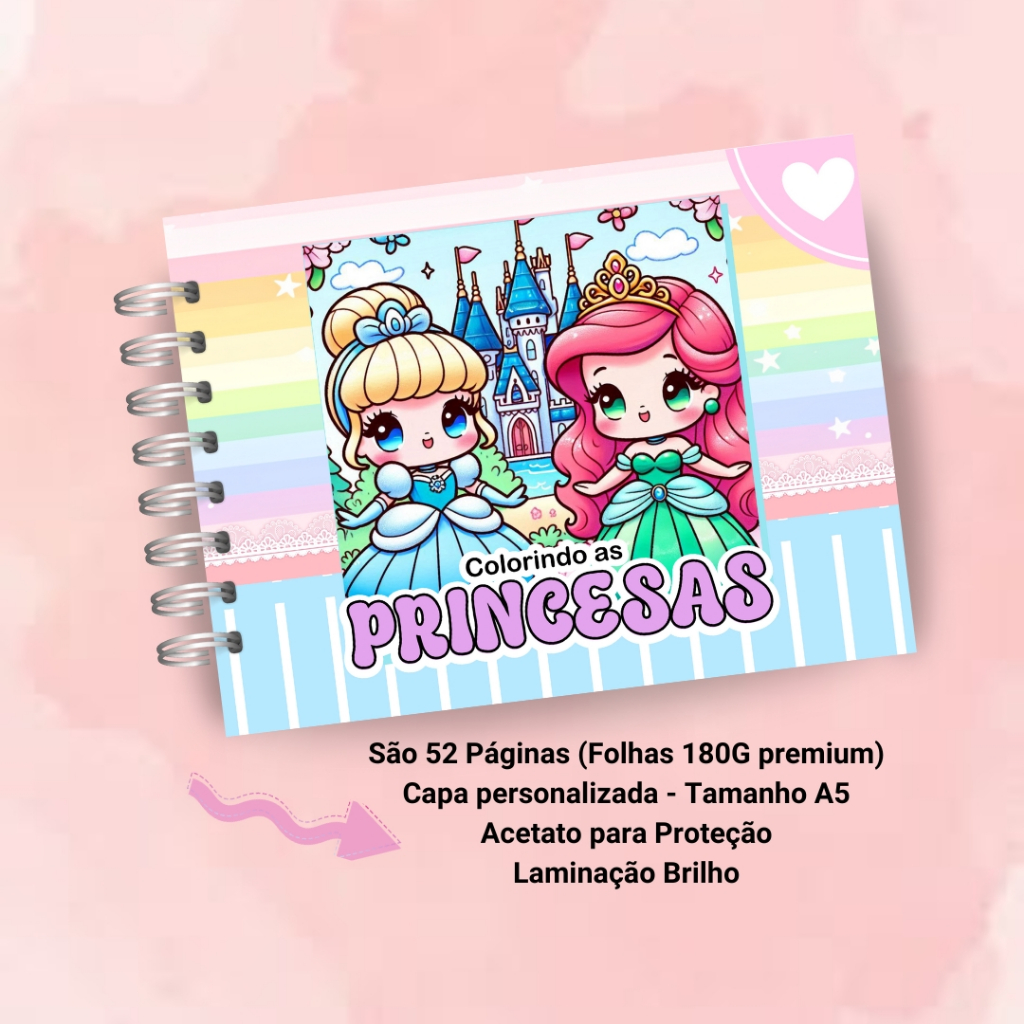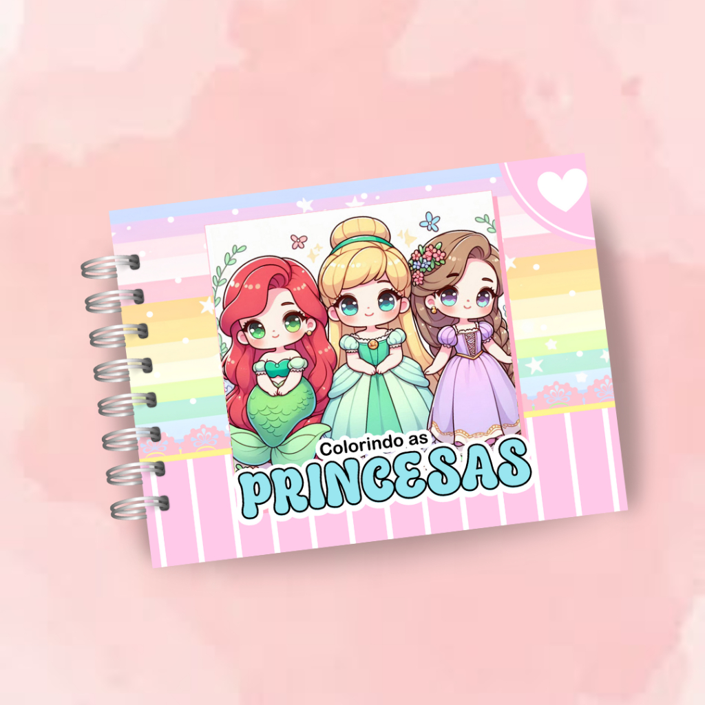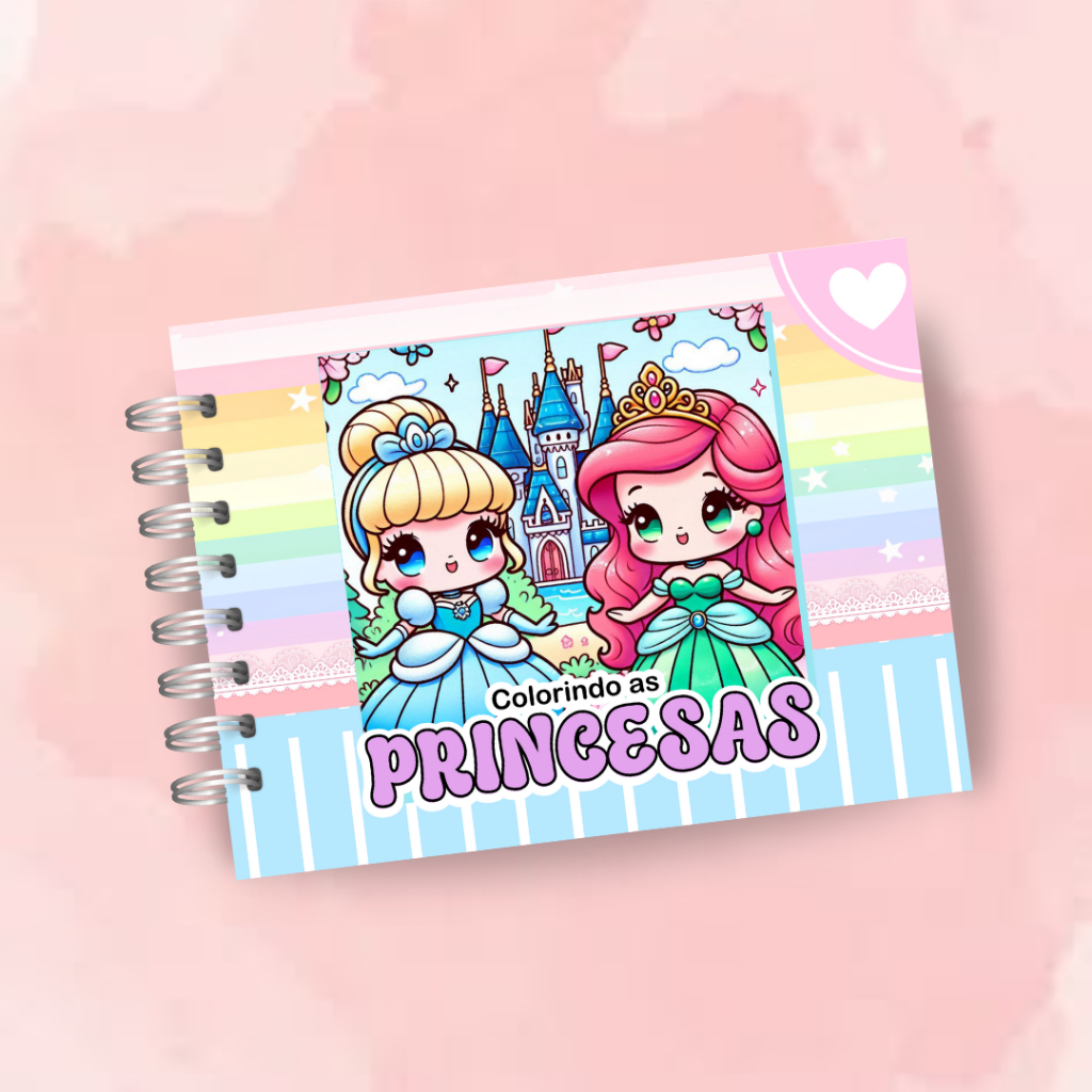 Livro de Colorir Princesas 52 folhas 180G Caderno de Desenho Pintura Coloring Book SEM PERSONALIZAÇÃO