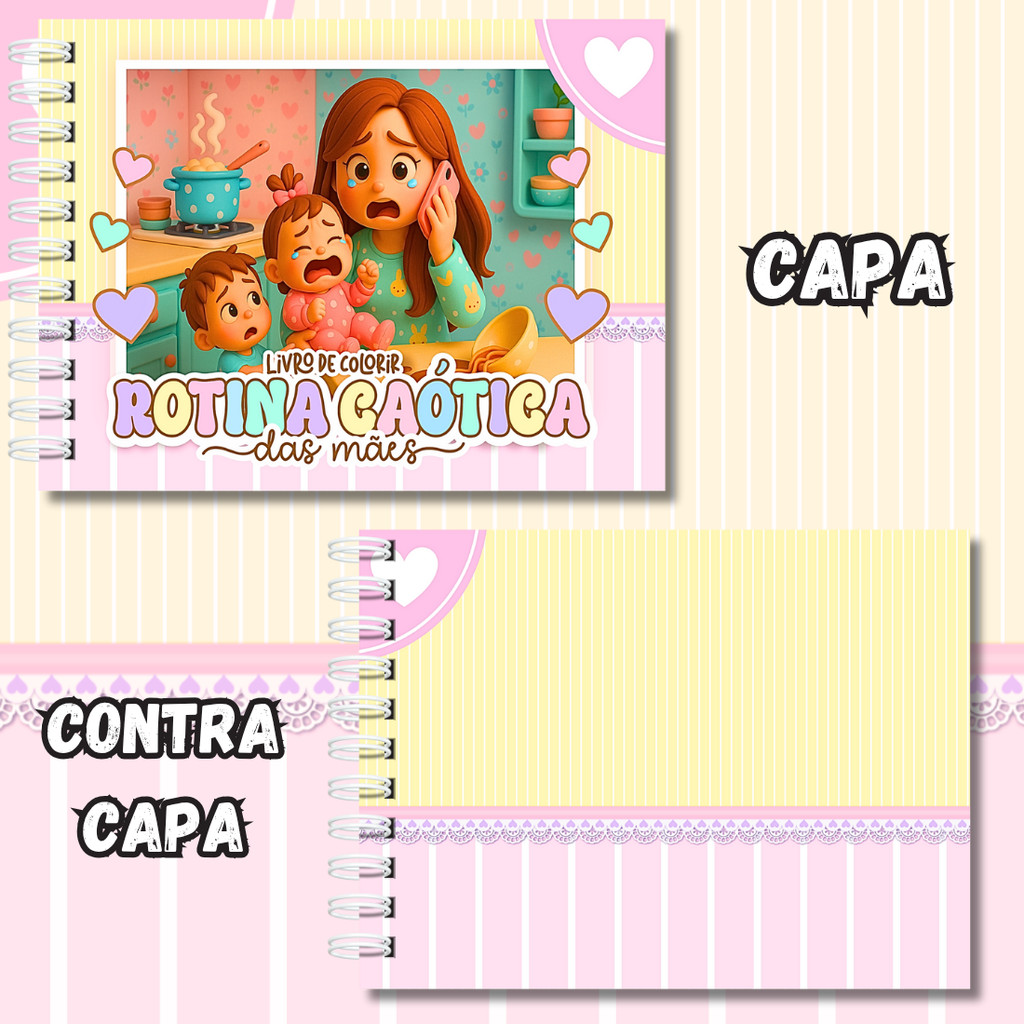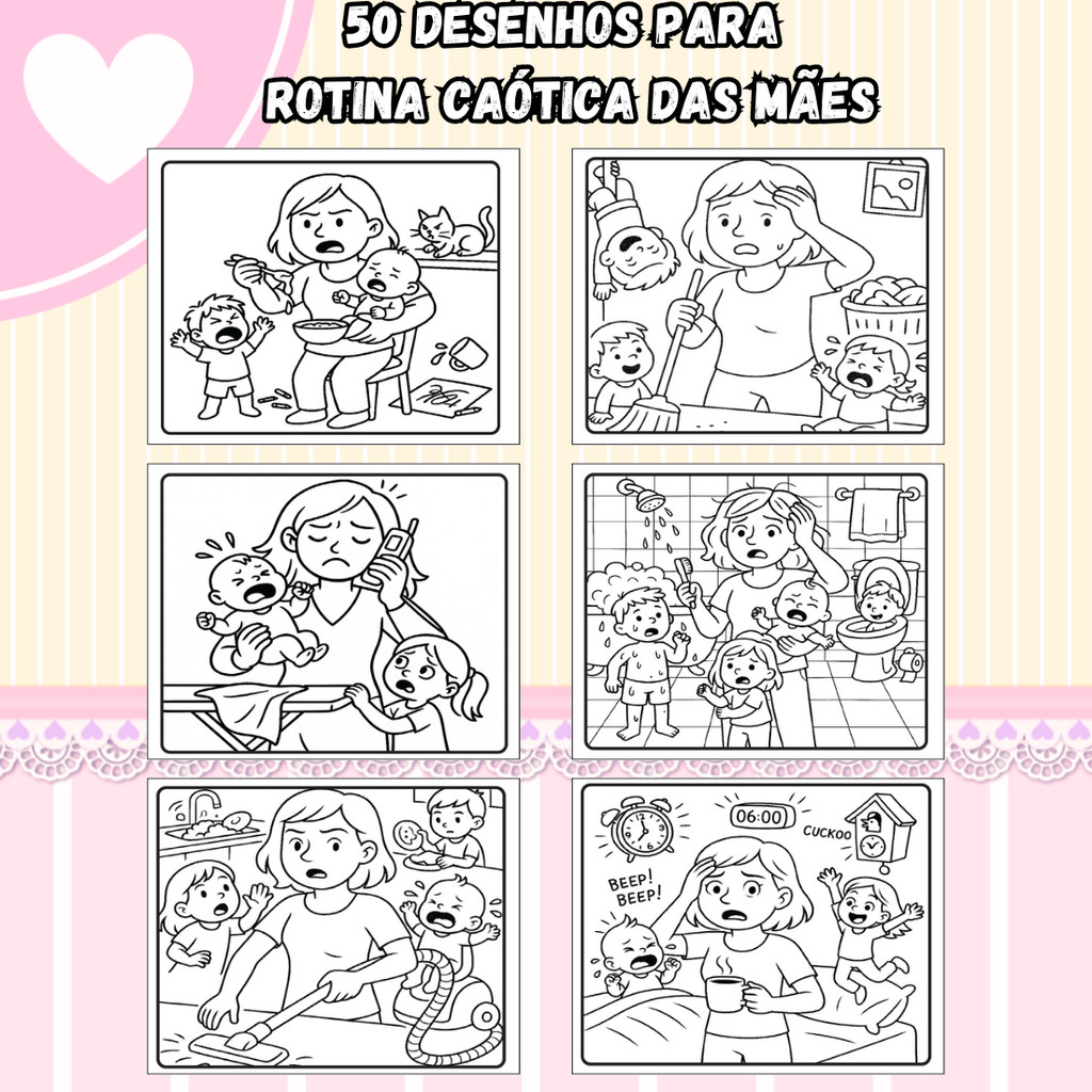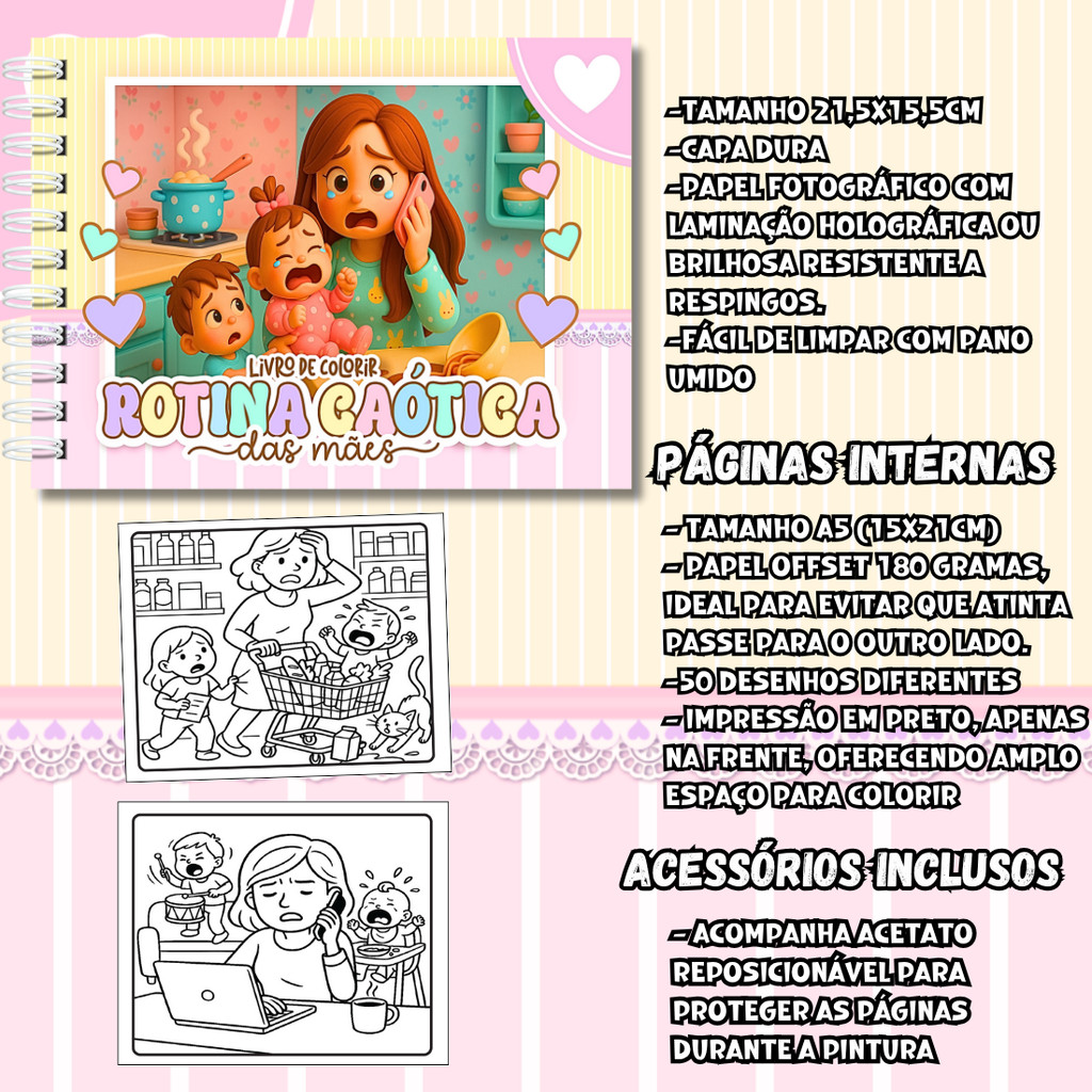 Livro de Colorir Rotina Caótia das Mães 50 Folhas 180G Caderno de Desenho Pintura Coloring Book SEM PERSONALIZAÇÃO