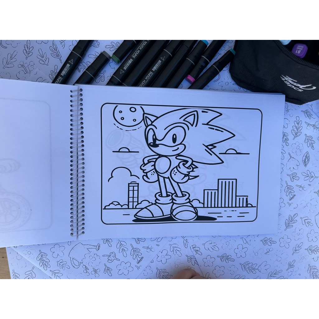 Livro de Colorir Sonic A4 Capa Flexível Espiral Infantil Criativo Presente para Fãs do Jogo