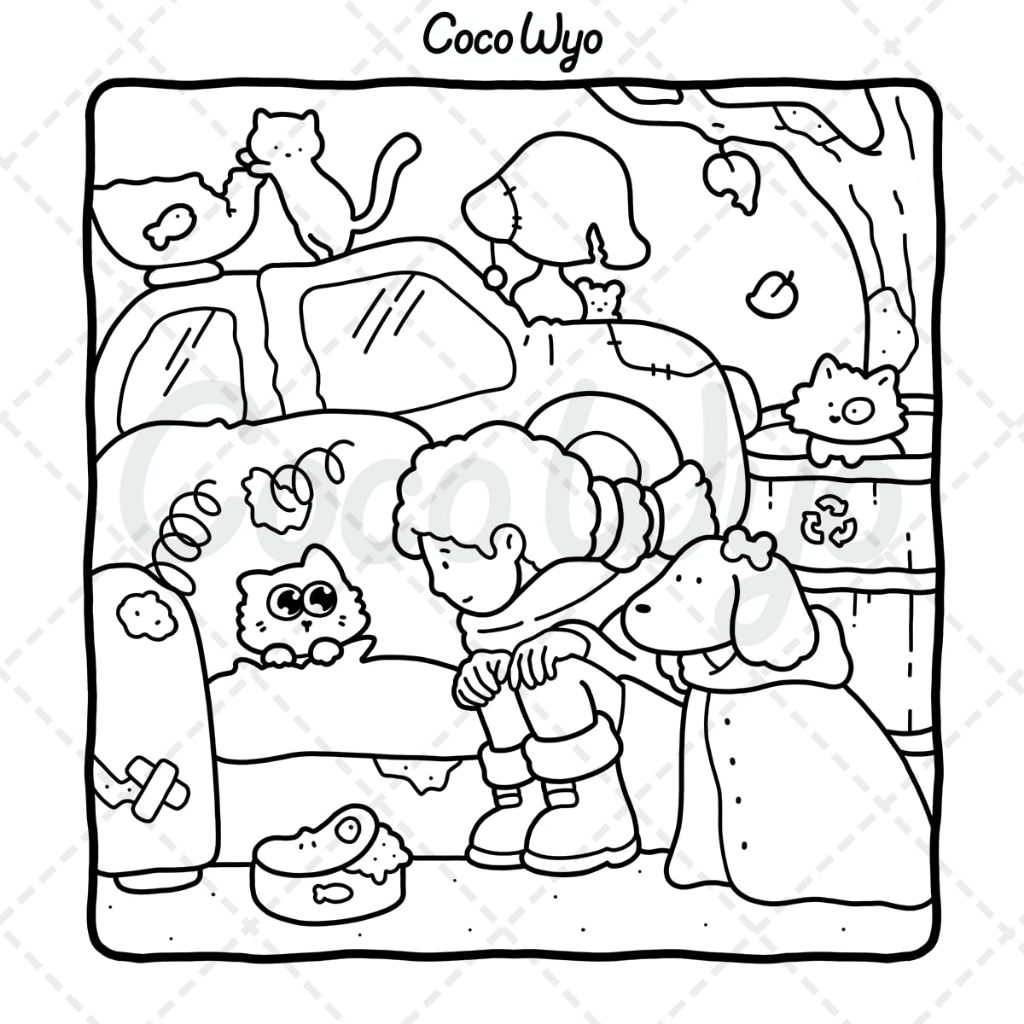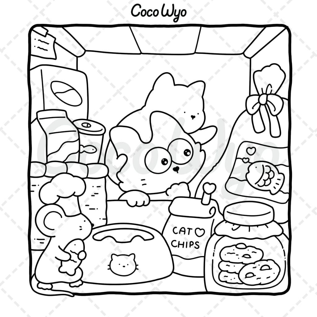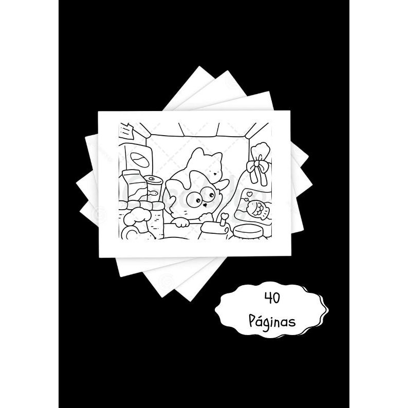 Livro de Colorir The Little Cat Cozy & Cute /Impressão Somente Frente/ Tamanho A5 & A4 / 40 Folhas