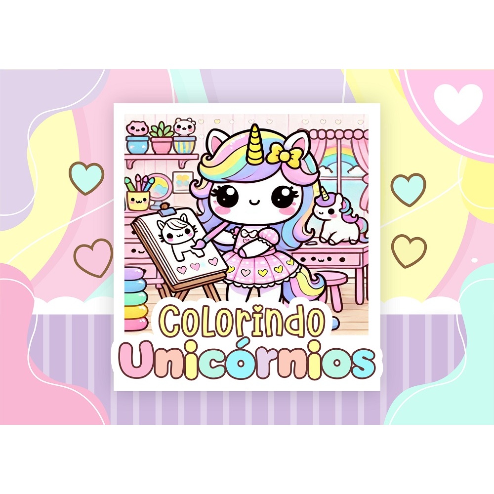 Livro de Colorir UNICÓRNIO 50 Folhas Papel 180g wire-o capa normal ou holográfica e elástico pintar bob good color
