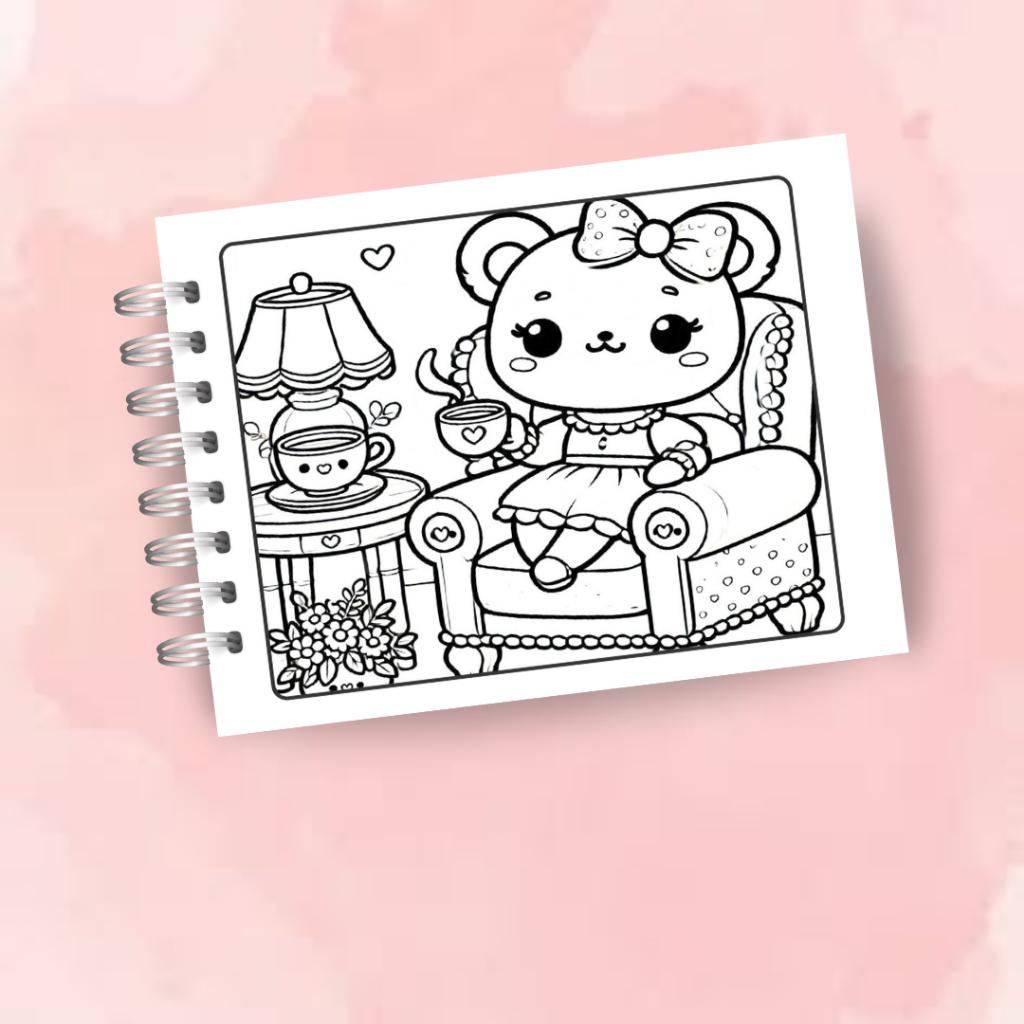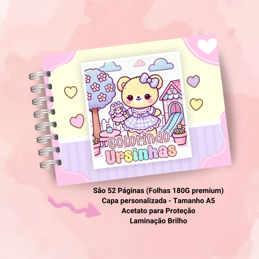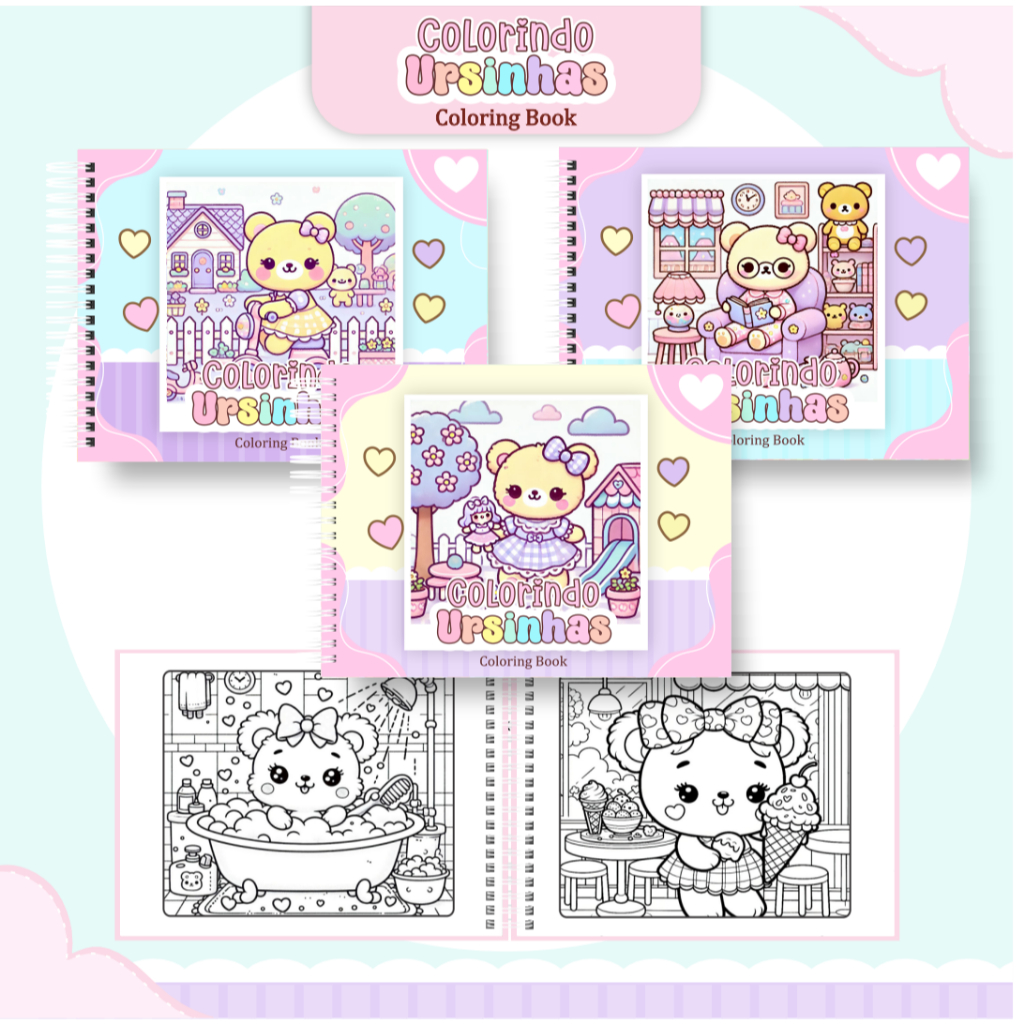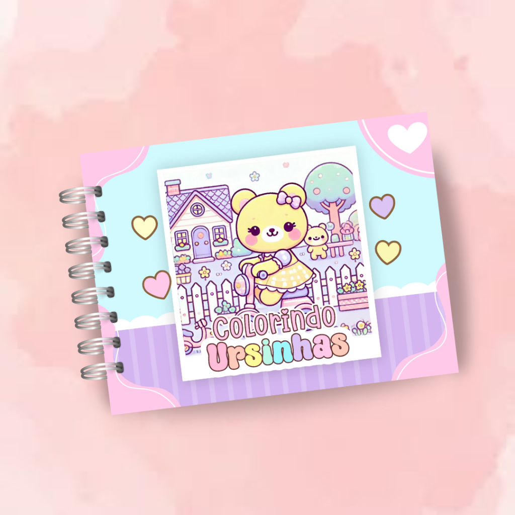 Livro de Colorir Ursinhas Kawaii 52 Folhas 180G Caderno de Desenho Pintura Coloring Book SEM PERSONALIZAÇÃO