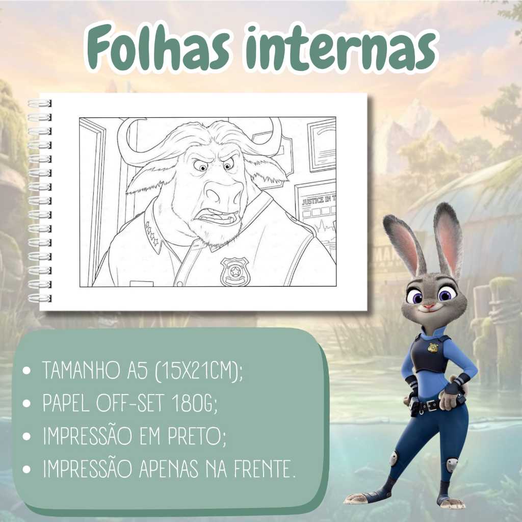 Livro de Colorir Zootopia 2 A5 | Capa Dura | Folhas 180g + Acetato | Desenhos Fofos