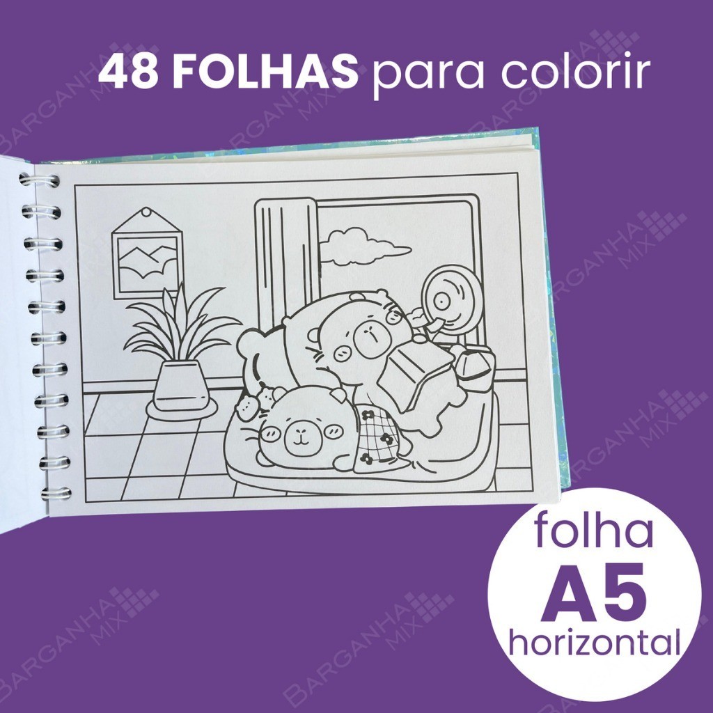 Livro de colorir Capivara da Bobbie Goods, capa dura, 48 páginas - Padrões e cores aleatórios