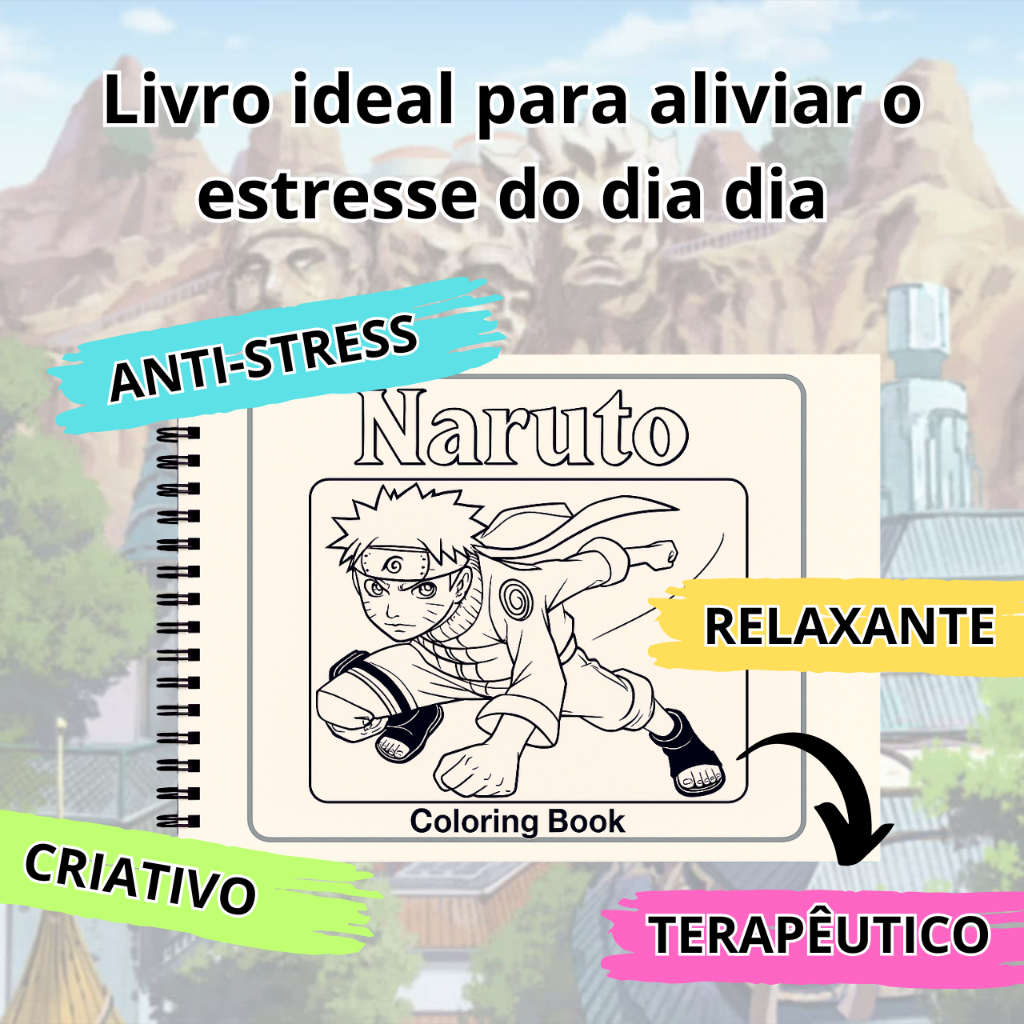 Livro de colorir NARUTO c/50 desenhos - Capa flexível