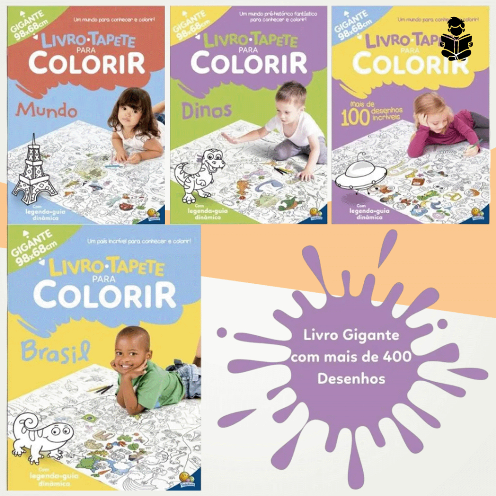 Livro em Forma de Tapete Gigante para Colorir com 100 Desenhos