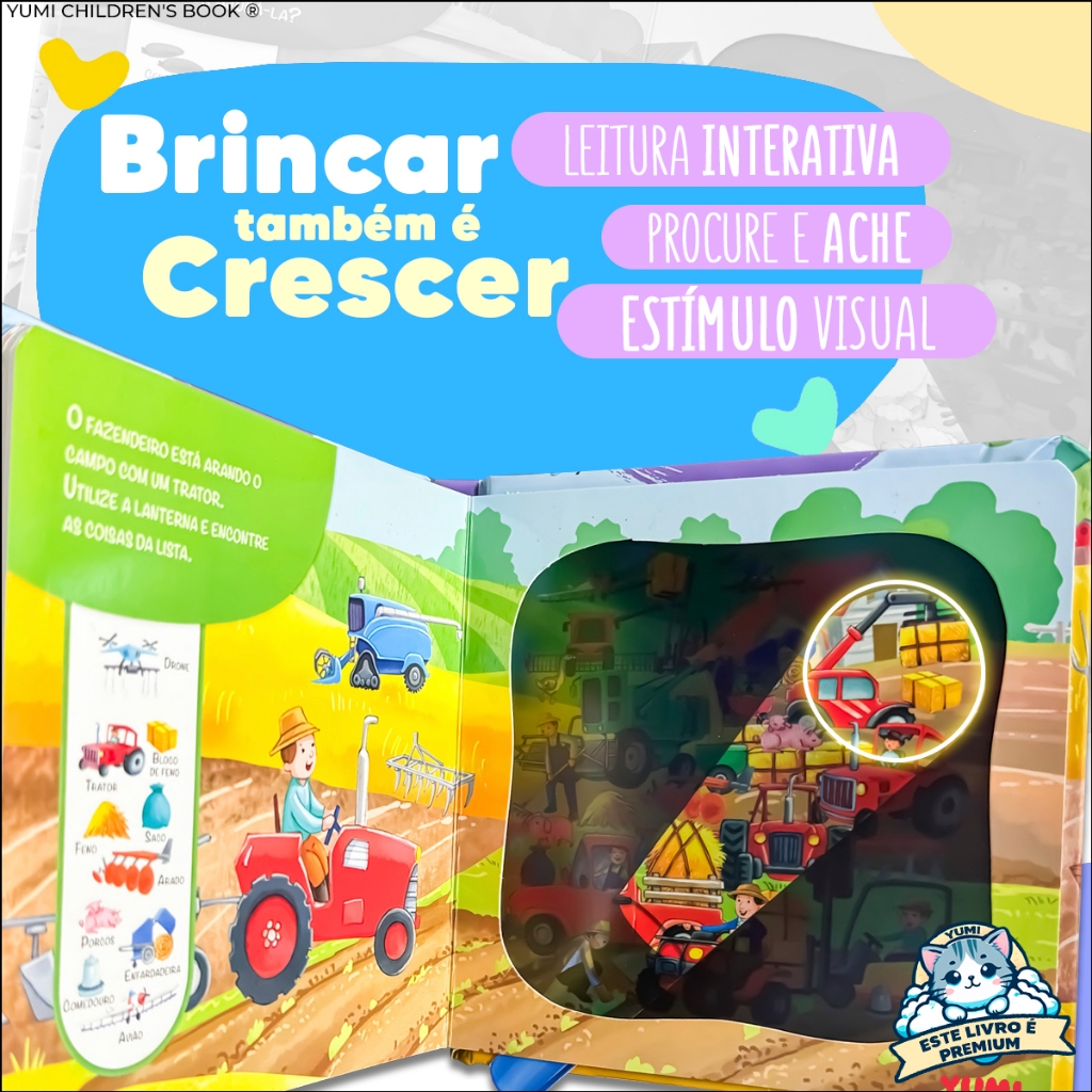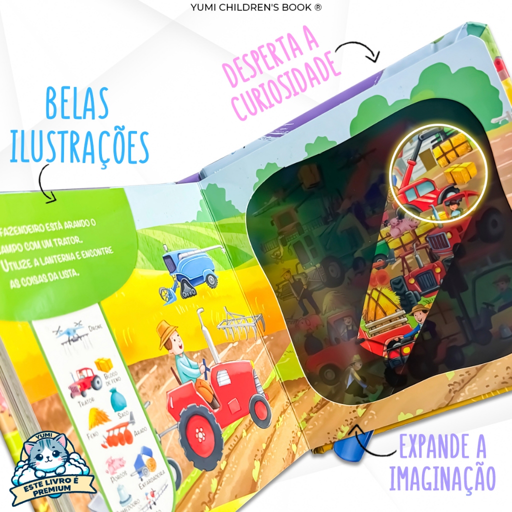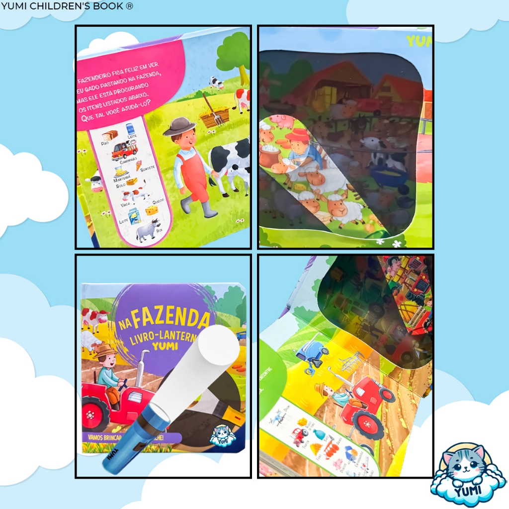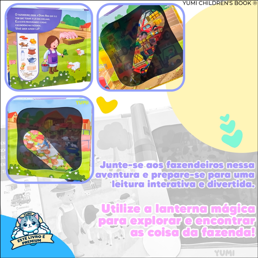 Livro-lanterna Infantil Animais Fazenda Livro Mágico Educativo Interativo Premium Colecionável