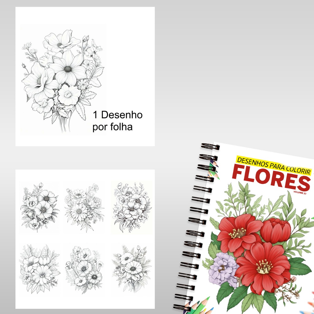 Livro para Colorir Adulto Flores 10 – 100 Desenhos Antiestresse para Relaxar
