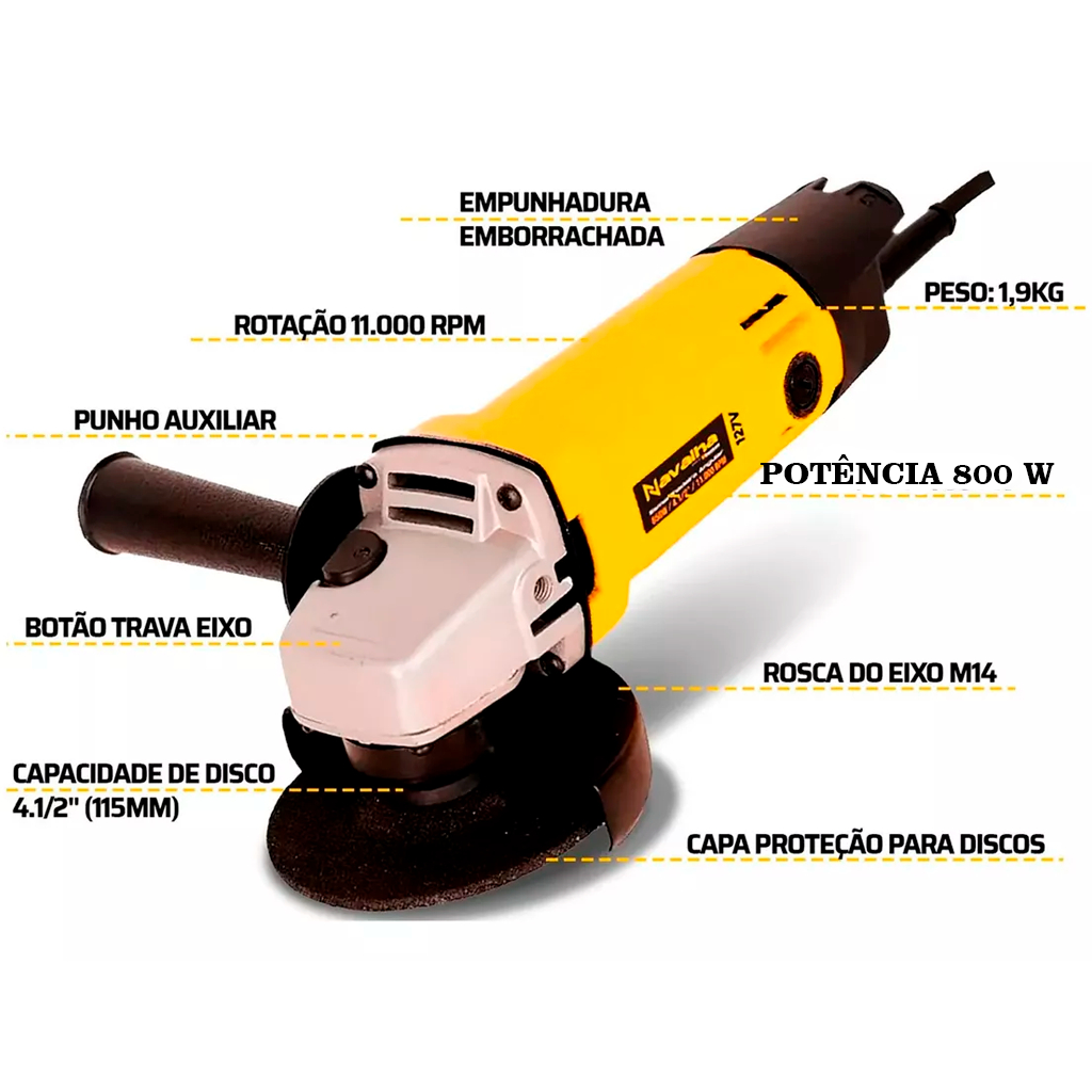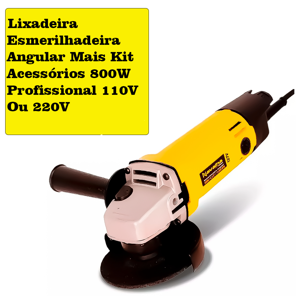 Lixadeira Esmerilhadeira Angular + Kit Acessórios 800W Profissional 110V Ou 220V Lixamento Corte