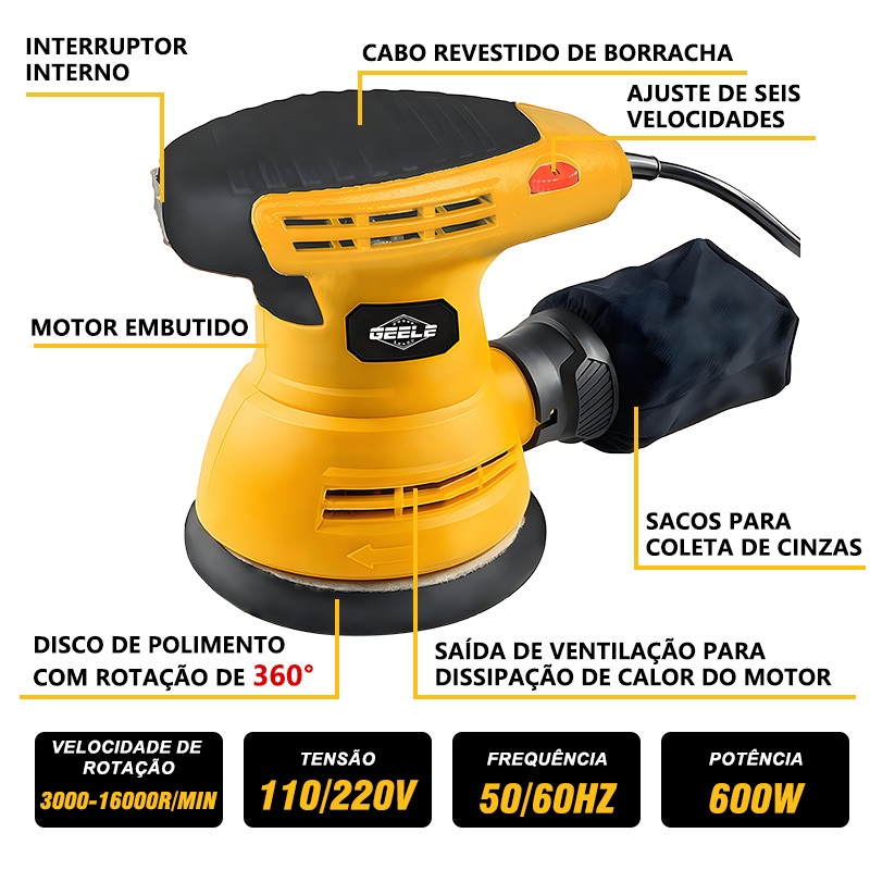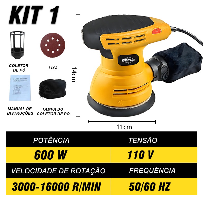 Lixadeira Roto Orbital Elétrica Madeira Lixa 600W + Coletor