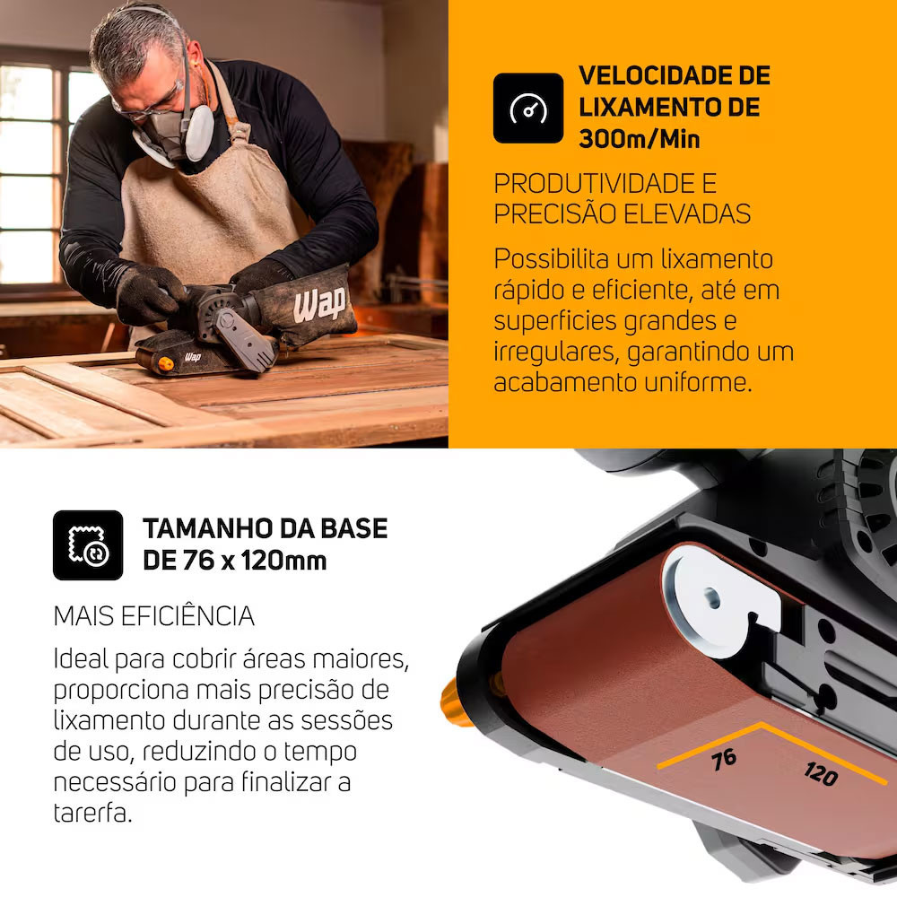 Lixadeira de Cinta WF LC01 com Trava de Uso Contínuo WAP