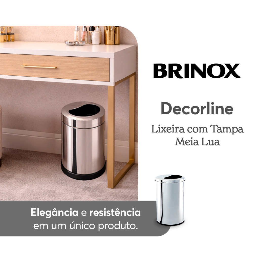 Lixeira 1/2 Lua Brinox Decorline 12 Litros Ø20 x 44cm Aço Inoxidável