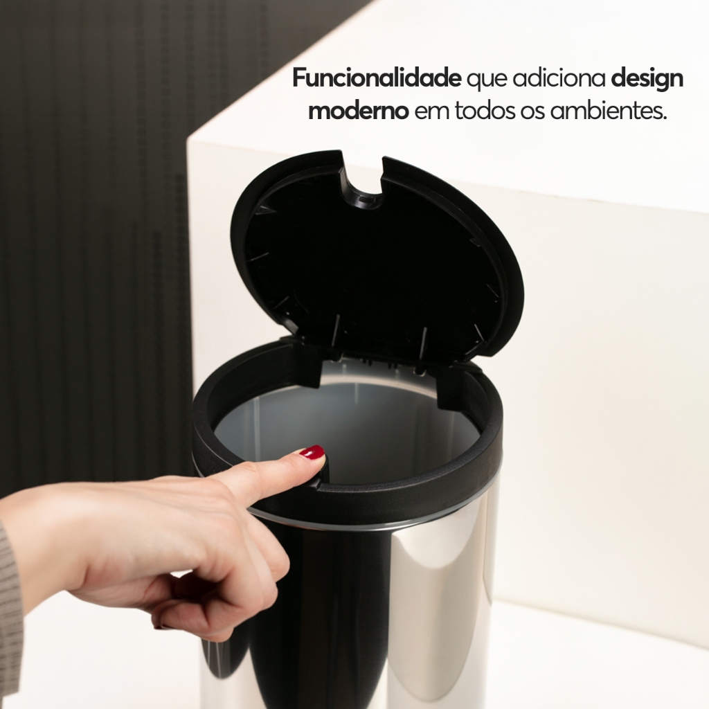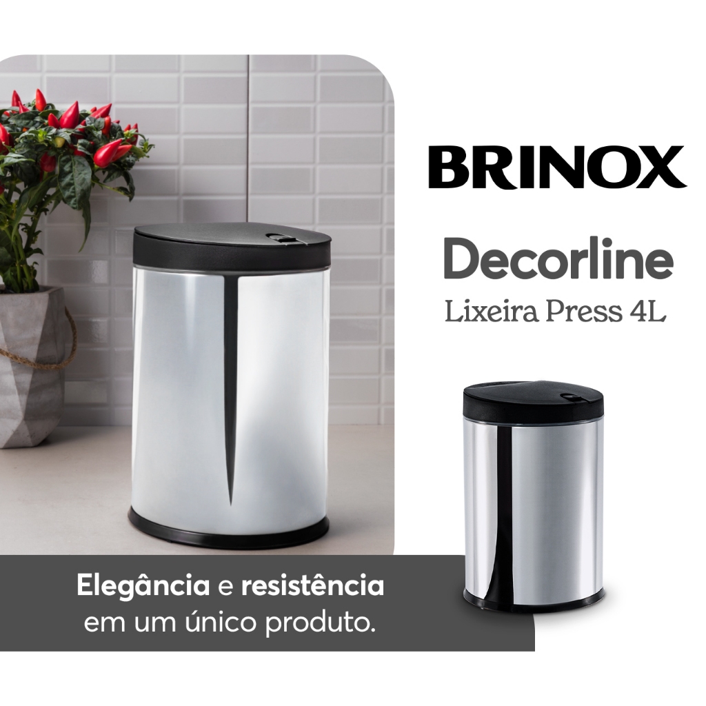 Lixeira Em Aço Inox Com Tampa Brinox Press - 4 Litros Preto