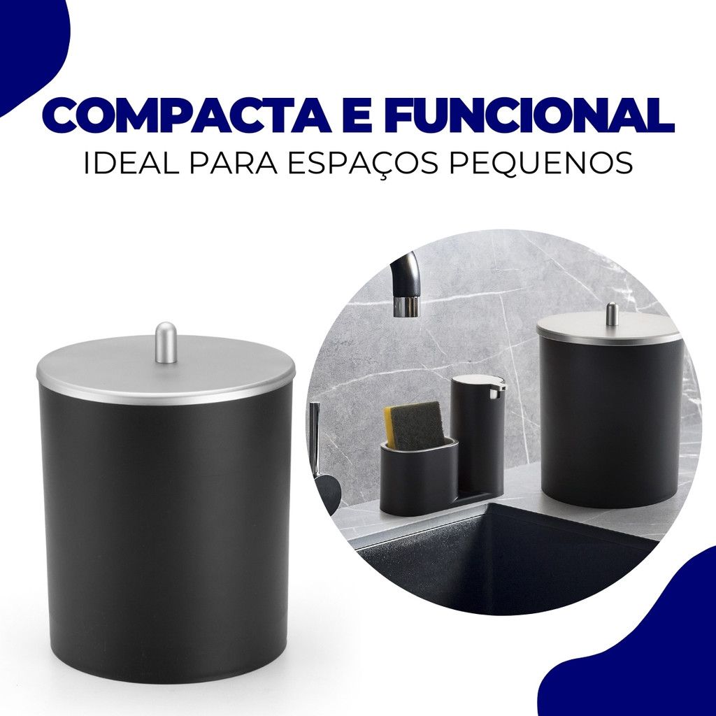 Lixeira Lixinho Cesto de Lixo Banheiro Lavabo Escritório Luxo Pia Cozinha 5 Litros Preto/Prata Arthi