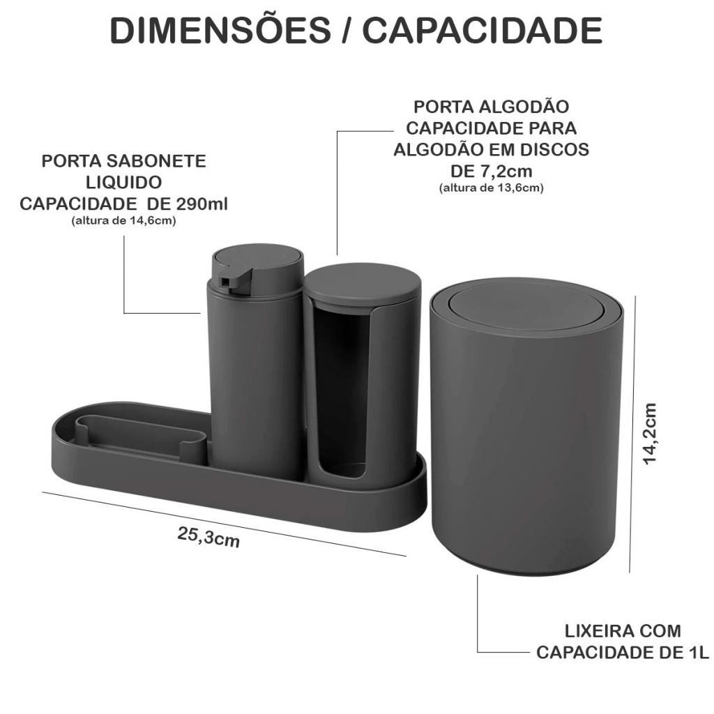 Lixeira de Mesa Porta Sabonete Líquido Suporte E Porta Algodão Brinox coza