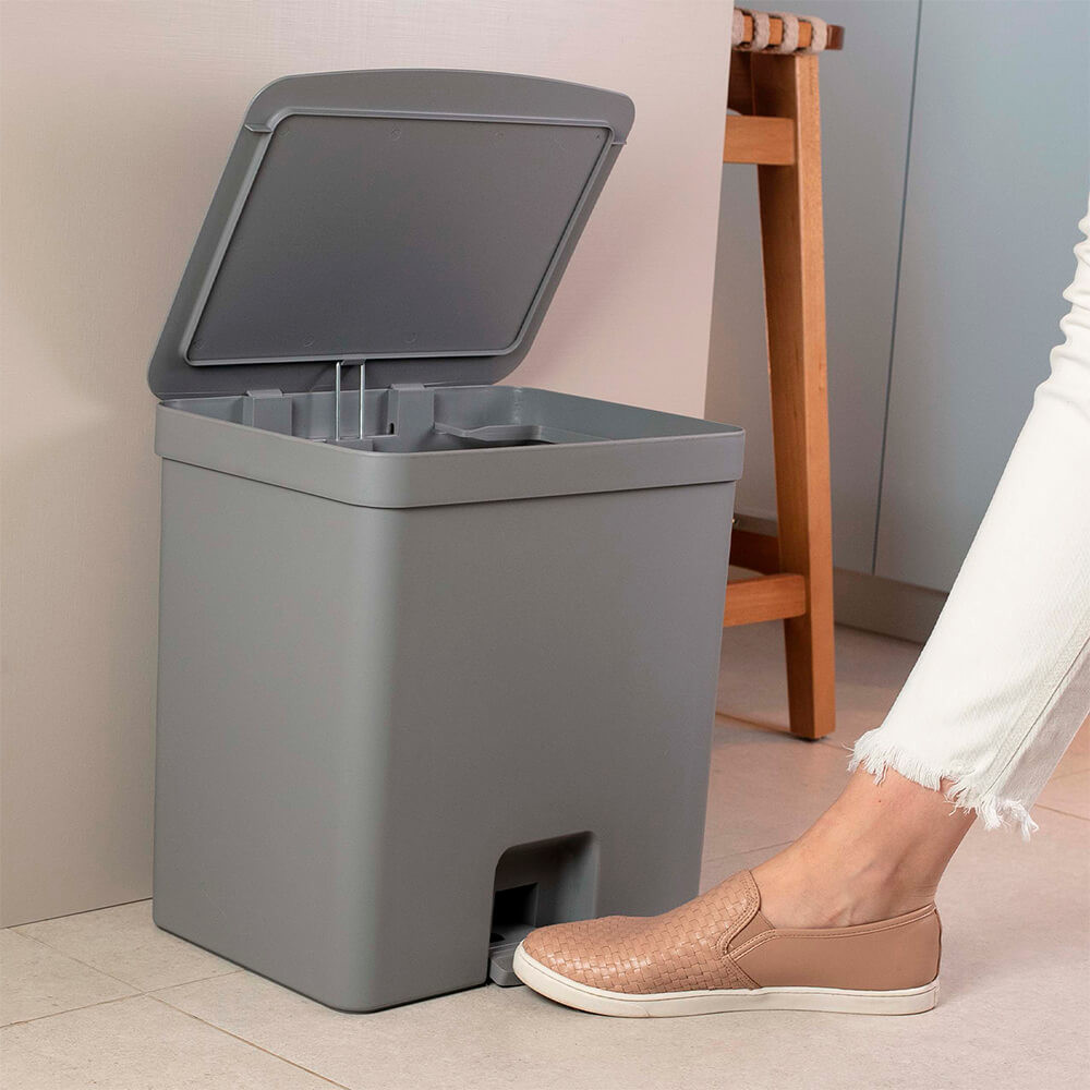 Lixeira para Banheiro com Pedal e Escova Sanitária Chumbo 20L - Ou