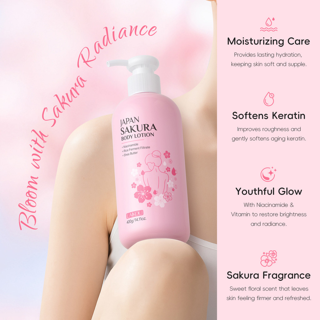 Loção Corporal LAIKOU Japão Sakura 400g | Iluminador E Hidratante Pele Suave Fragrância Delicada