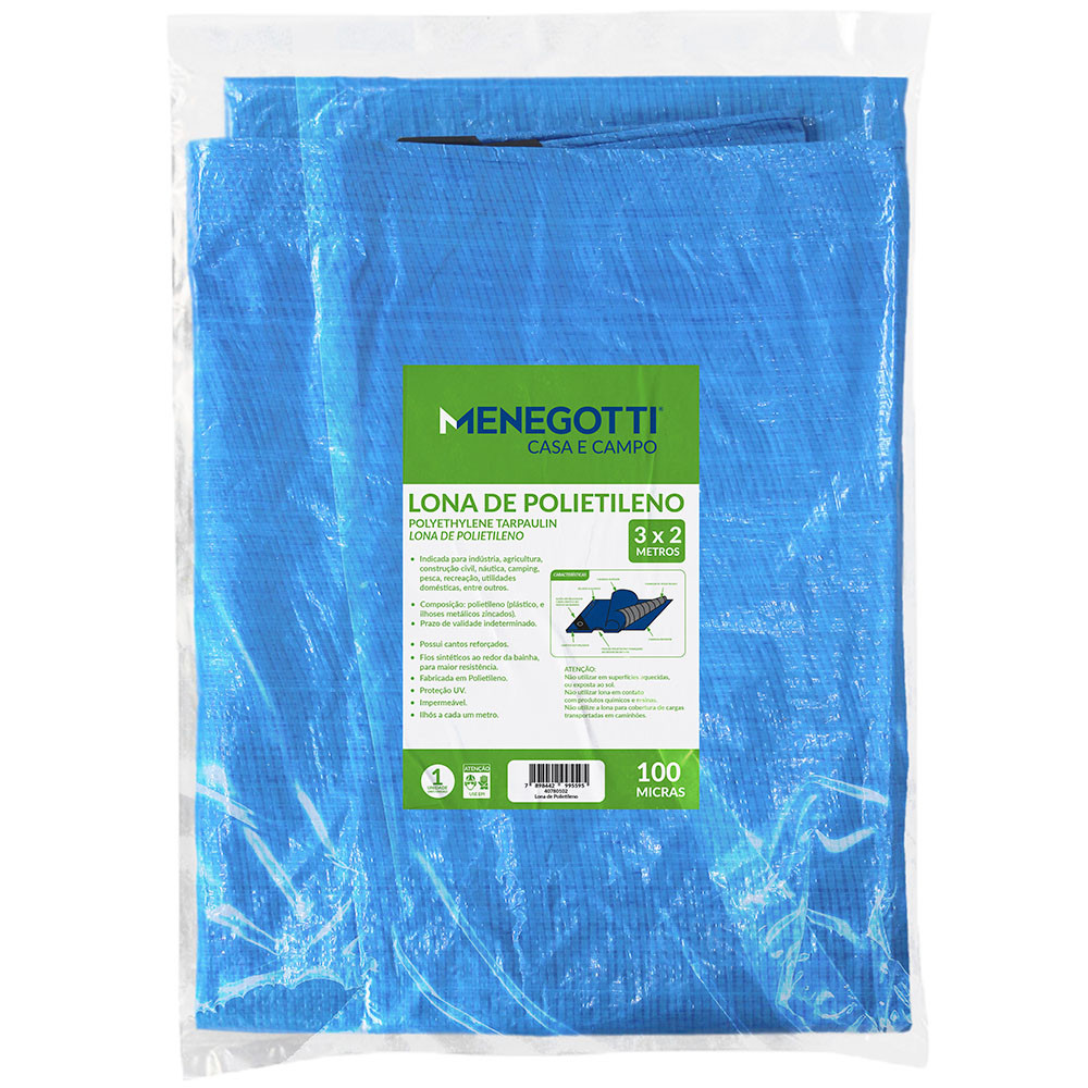 Lona Azul Menegotti de 3x2 Metros feita em Polietileno com Impermeabilidade Total para Armazéns