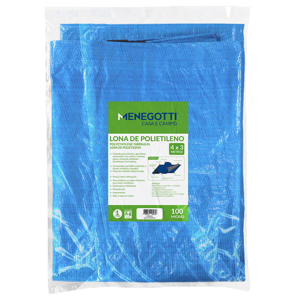 Lona Azul da Menegotti 4x3 Metros Feita em Polietileno e 100 Micras para Cargas e Armazéns