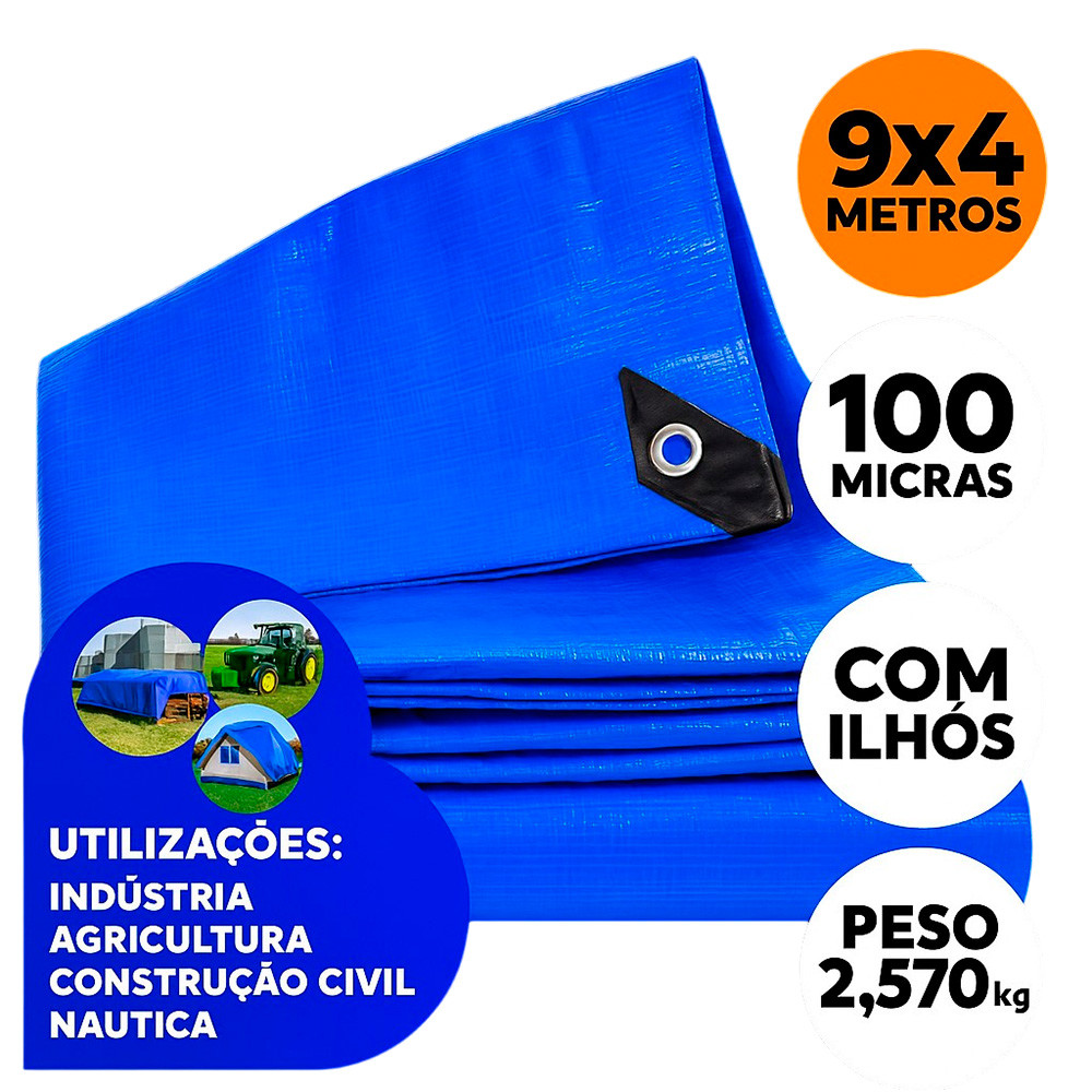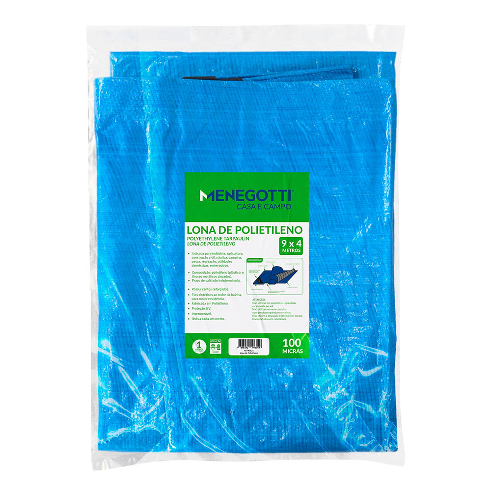 Lona de Polietileno Menegotti 9x4m 100 Micras Azul com Proteção UV – 2,570kg