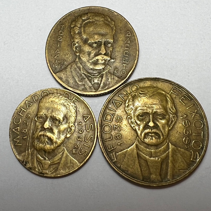 Lote 3 Moedas 500 1000 e 2000 Reis 1939 Ilustres Machado de Assis Tobias Barreto e Floriano Peixoto