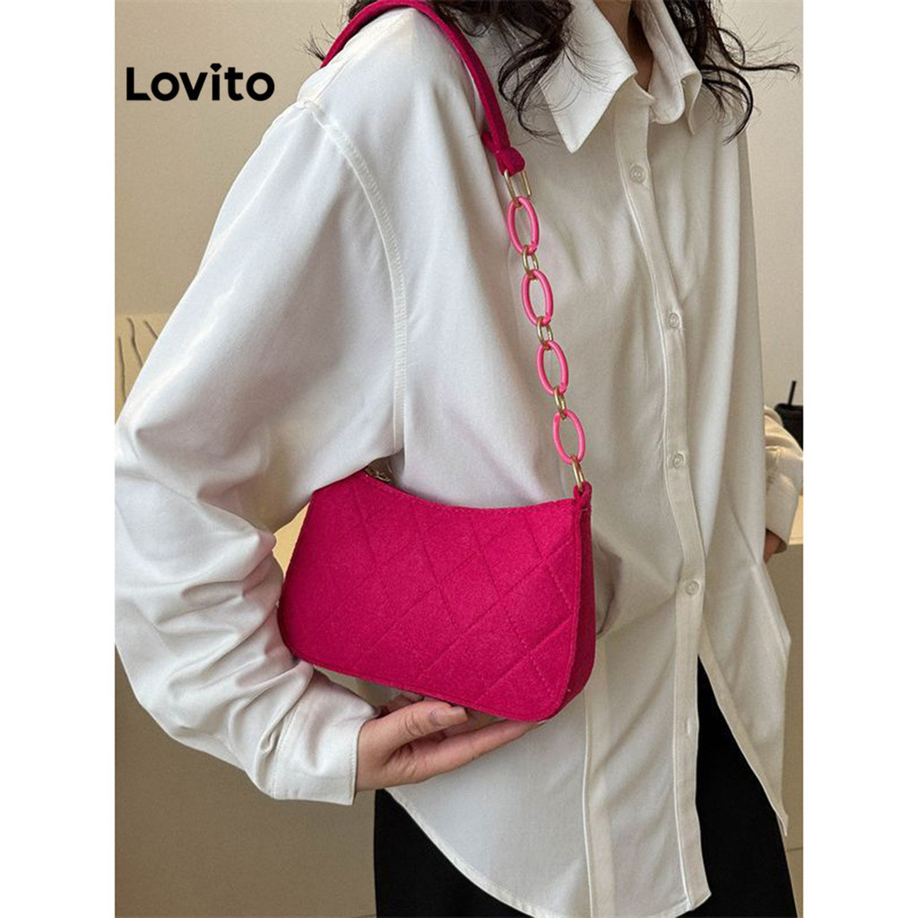 Lovito Bolsa De Ombro Pequena Casual Com Corrente Lisa Para Mulheres Lna09129 (rosa Choque/preta)
