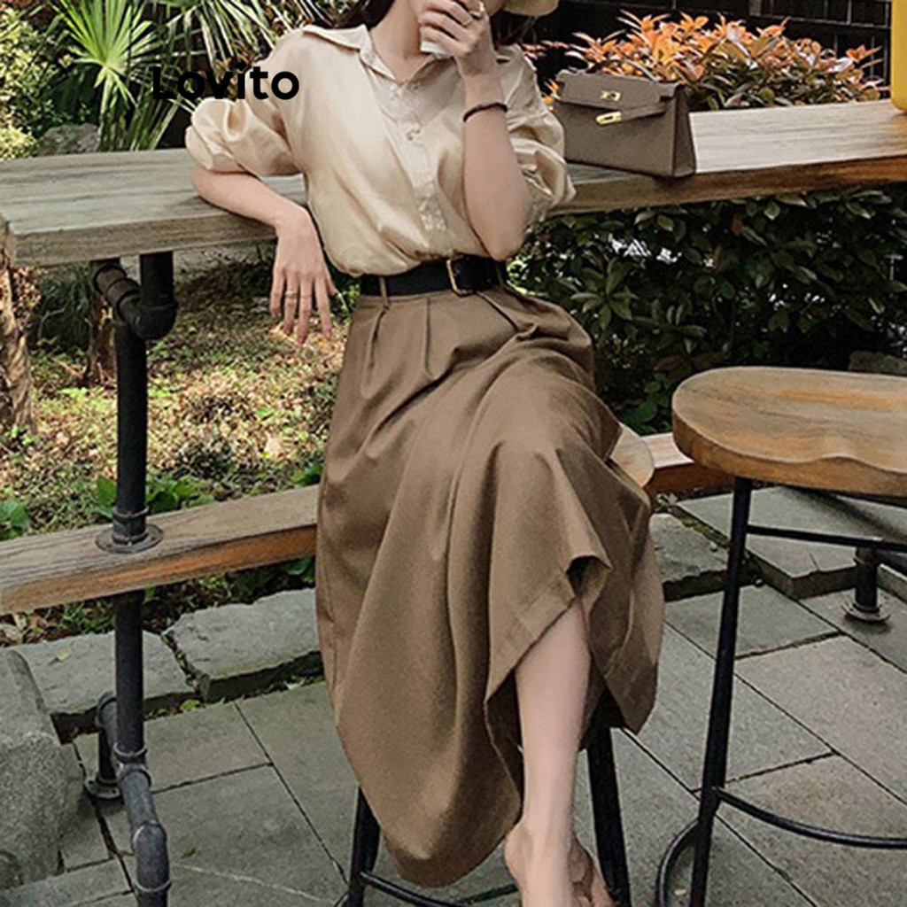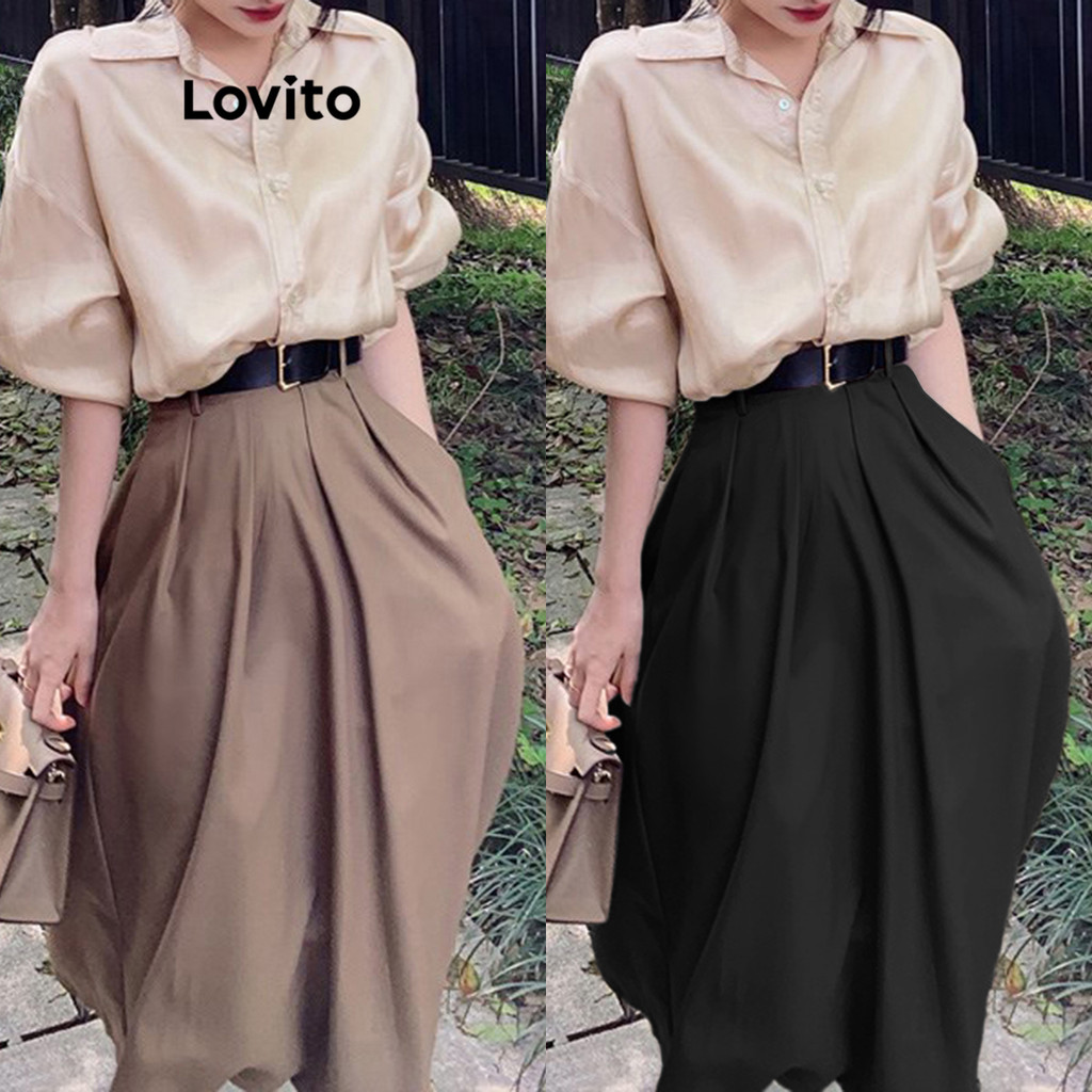 Lovito Saias Casuais Saias Plissadas Lisas Para Mulheres LNE21026 (Multicolorido)
