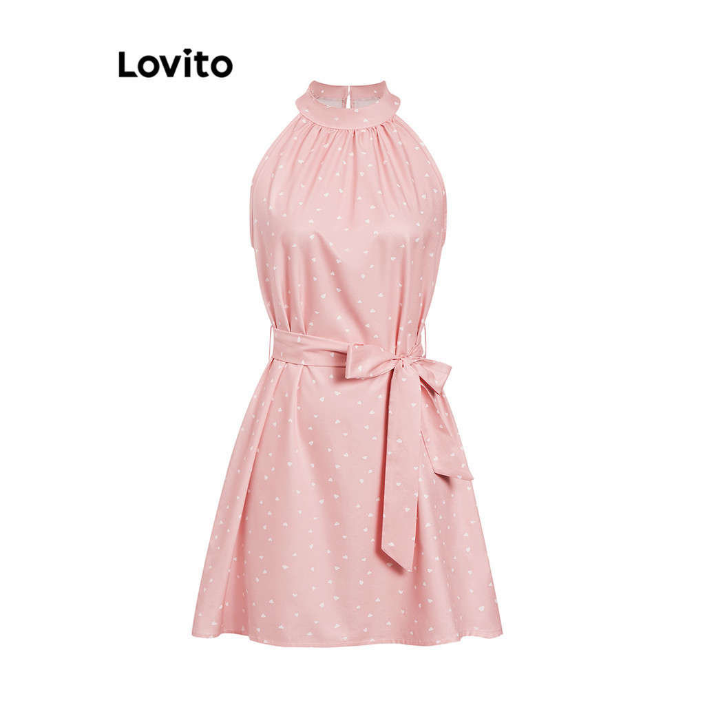 Lovito Casual Vestido Feminino de Bolinhas Franzido com Cinto LNE27234 (Vermelho/Preto)