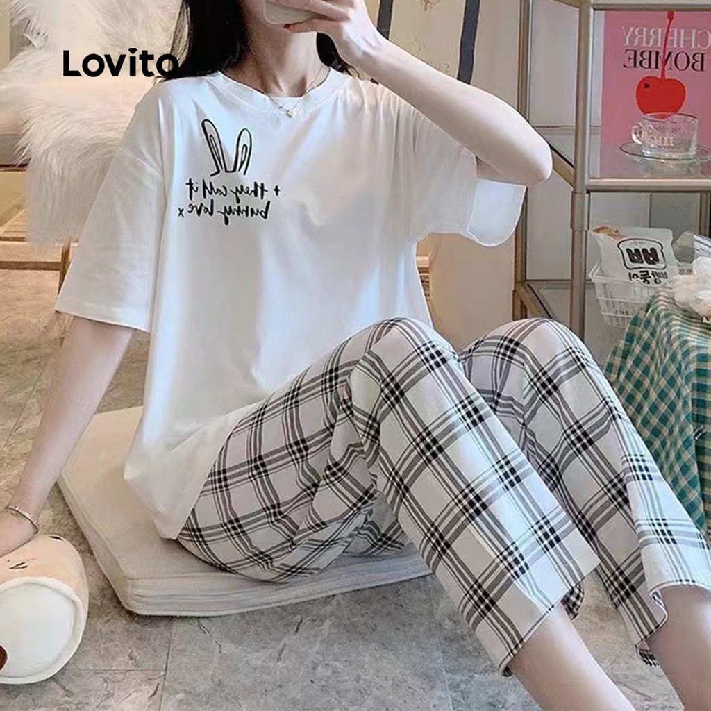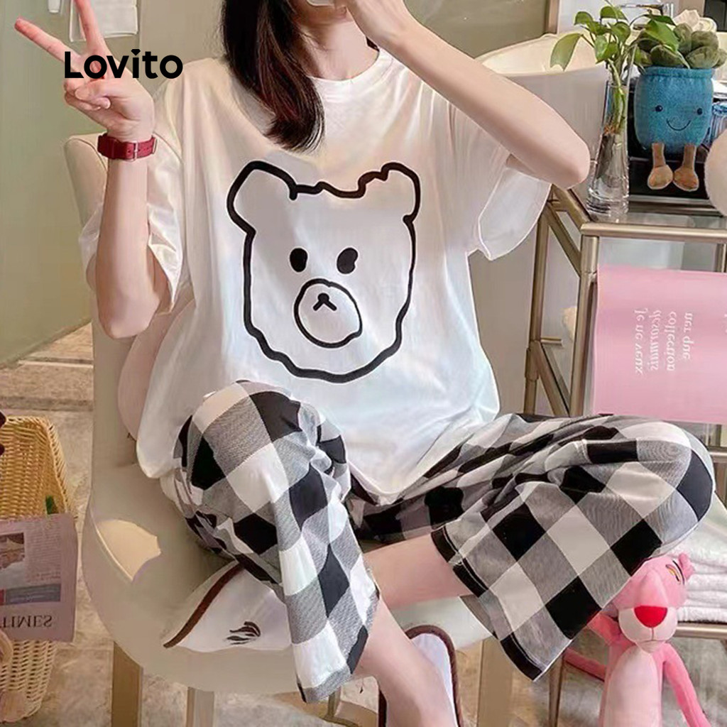 Lovito Conjunto de Pijama 2 Peças Fofo Confortável para Casa e Exterior Menina Doce Mãe/Verão para Mulheres LNE121069