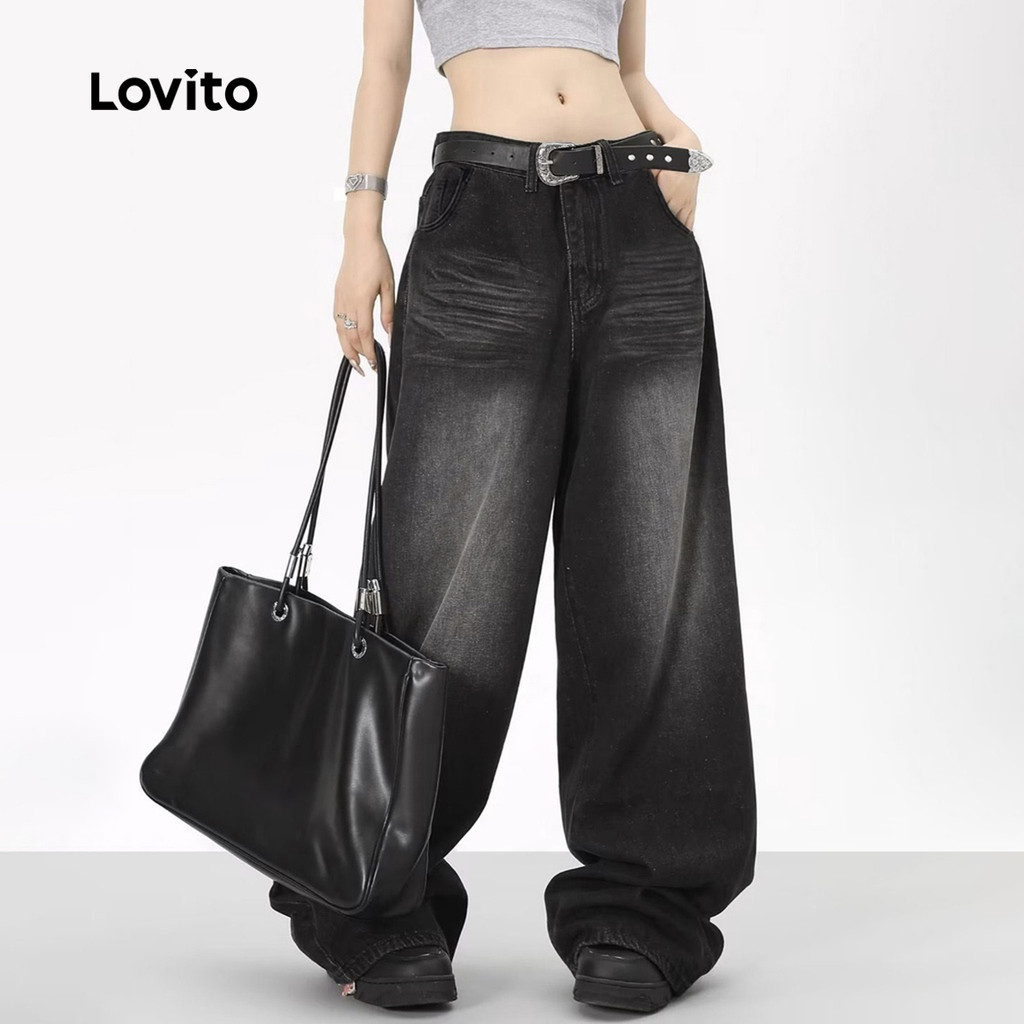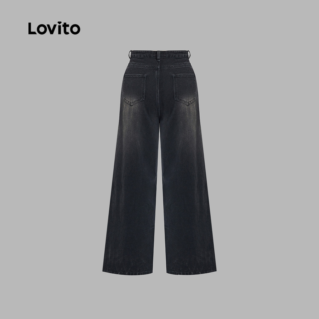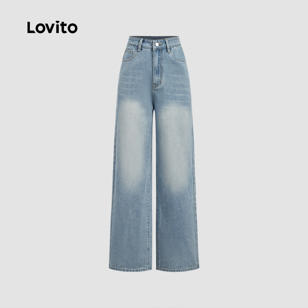 Lovito Jeans casual simples com lavagem crua para mulheres 102AD449