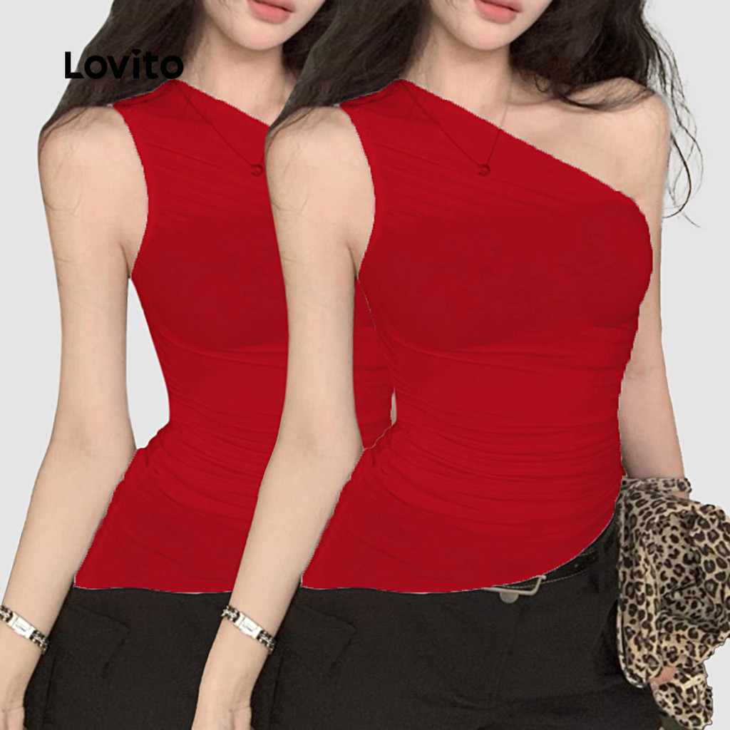 Lovito Regata Casual Lisa Com Franzido Para Mulheres L104ED738